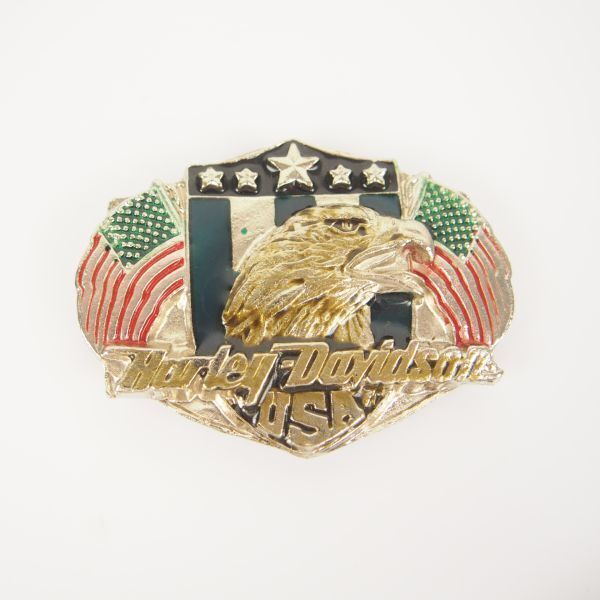 【新品・送料無料】D) Harley-Davidson ハーレーダビッドソン イーグル バックル 黒/緑 星条旗