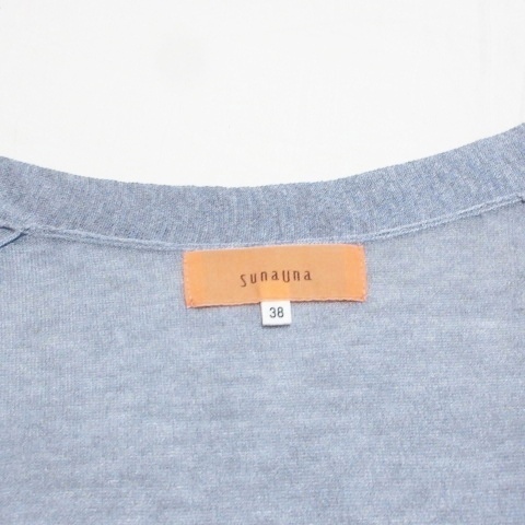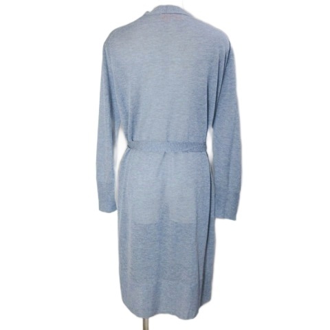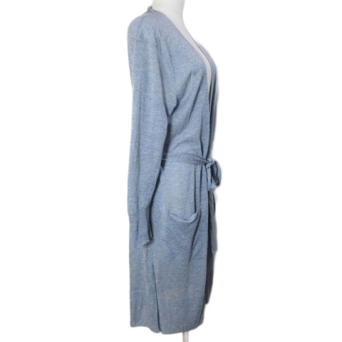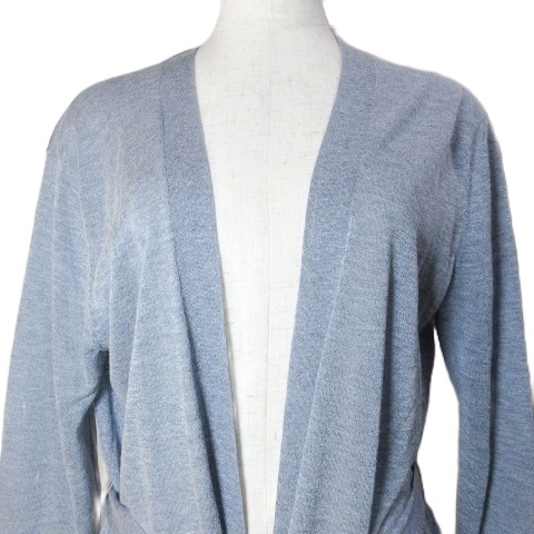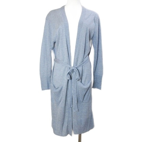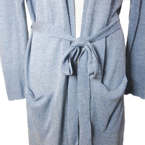 スーナウーナ Sunauna 美品 ベルテッド カーディガン ロング 長袖 レーヨンニット 薄手 38 M相当 青 ブルー X レディース