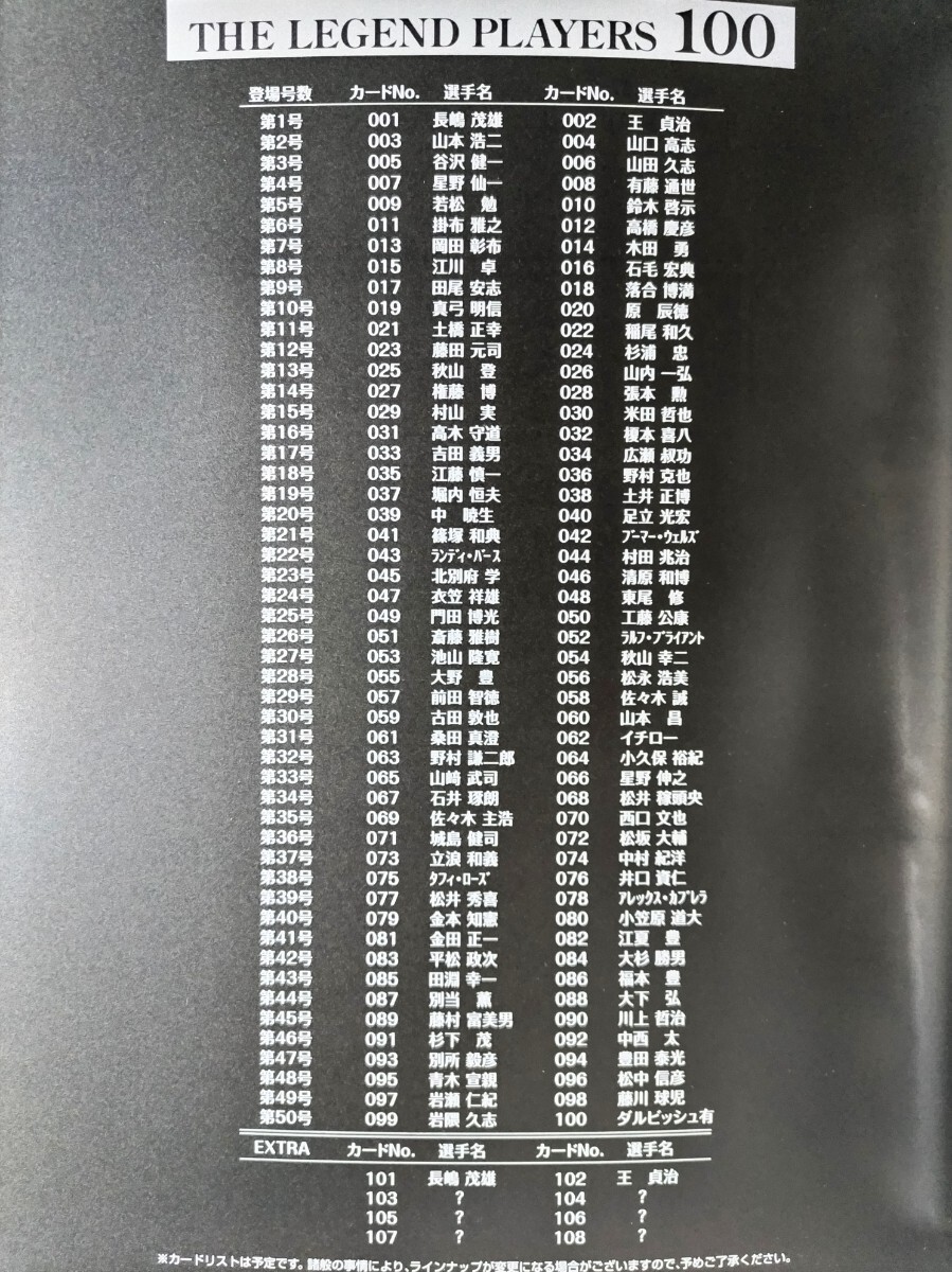 ベースボールマガジン社より2009年1年間かけて毎週発売された雑誌に付いていた付録カード100枚コンプリート。