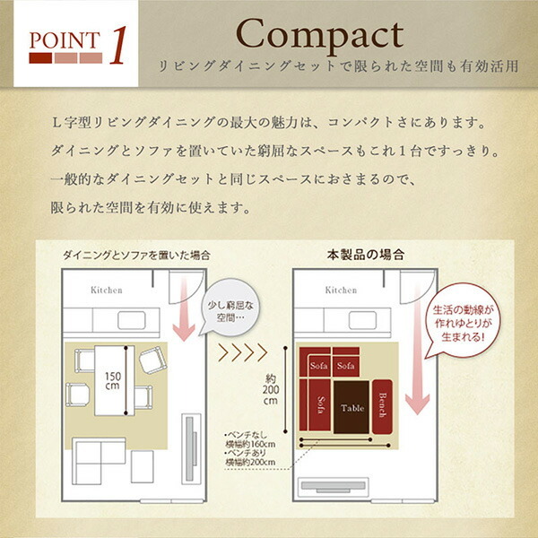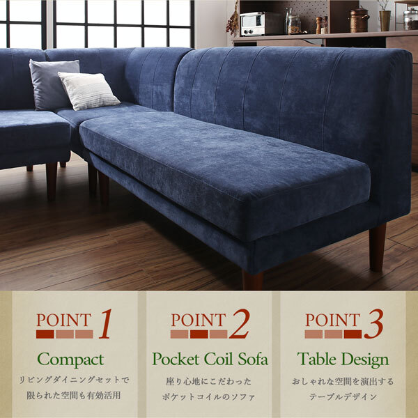 ダイニングセット(テーブル&ソファ) 3人 4点セット(テーブル+2Pソファ1脚+1Pソファ1脚+コーナーソファ1脚) W120