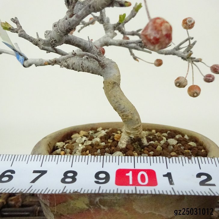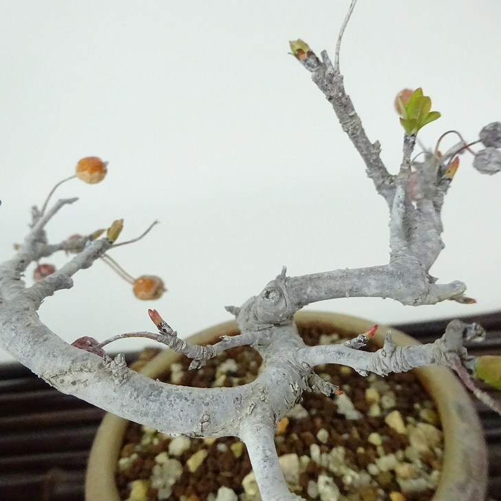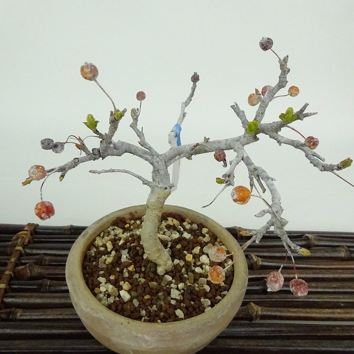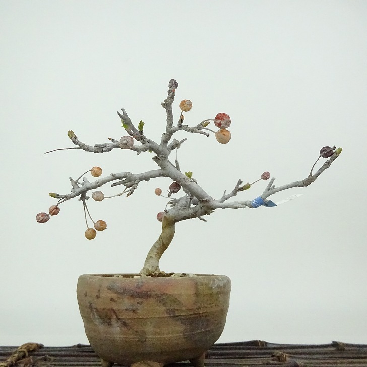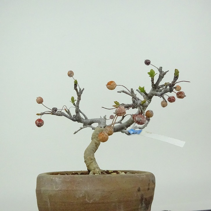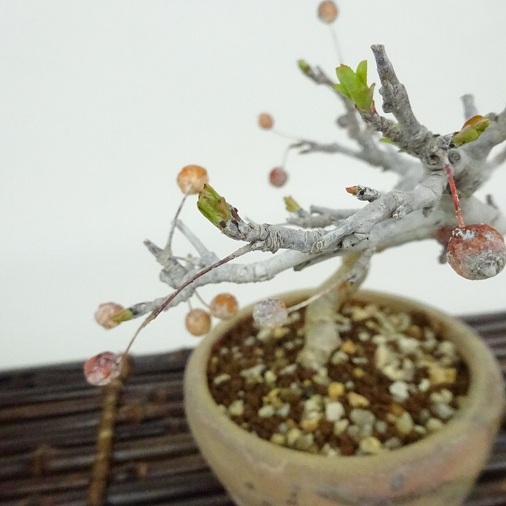 | ■植物ですので撮影時期や季節によって剪定などの手入れにより写真から変化がございます。撮影日をご確認のうえ、ご注文ください。 【酸実盆栽】 ズミの名前の由来は昔、樹皮を黄色の染料にしたことにより「染み」から、あるいは実が酸っぱいことから酢実、とも呼ばれます。 4月~6月に咲く白色・淡紅色の花は枝につき9月~11月頃に実がなります。 リンゴに近縁な野生種でヒメリンゴの親ともいわれています。 |