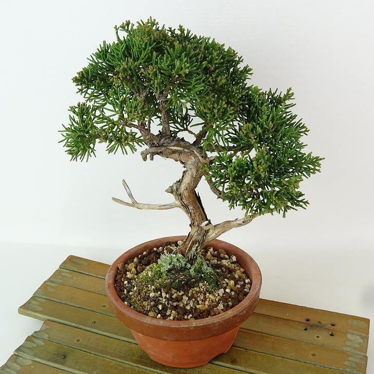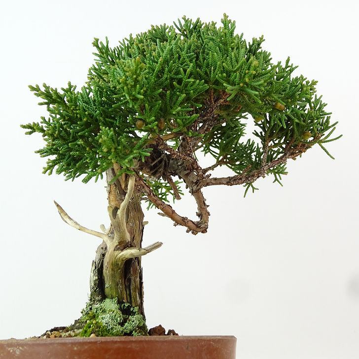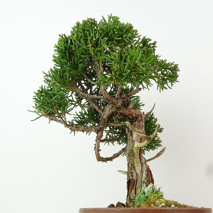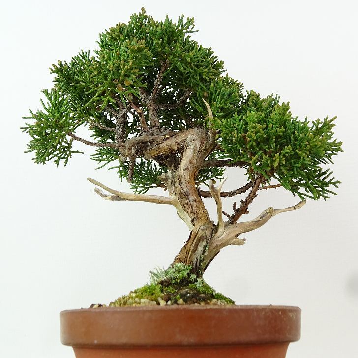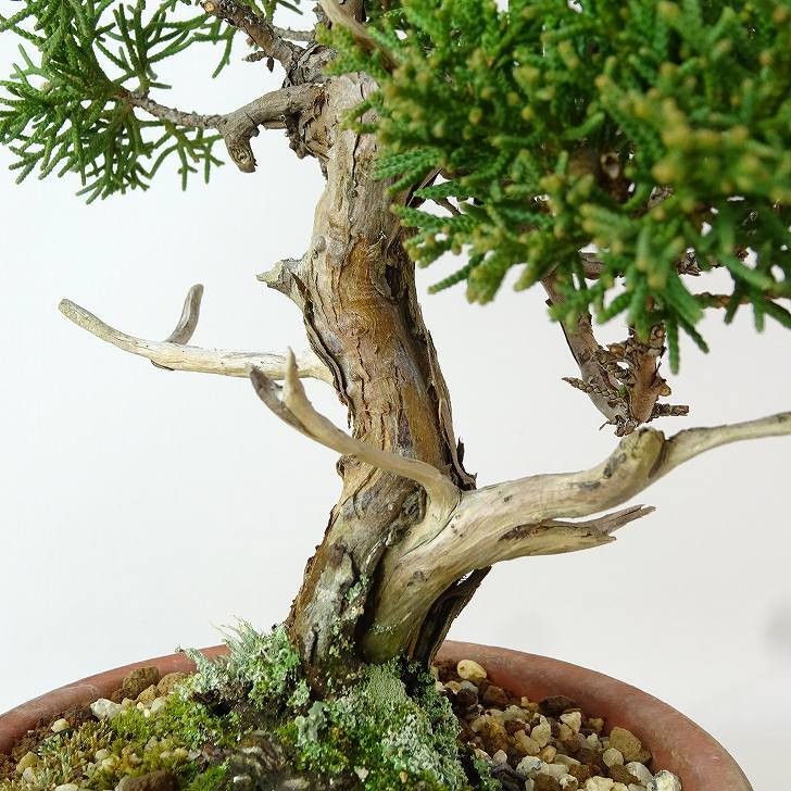 ■植物ですので撮影時期や季節によって剪定などの手入れにより写真から変化がございます。撮影日をご確認のうえ、ご注文ください。 ■年に一度、冬頃にジン・シャリのお手入れをおこなっています。薬品の関係で黄色く変色しているようにみえる場合がありますが徐々に薄れていくので問題はありません。 【真柏盆栽】 シンパクの1番の特徴と言えば、短く締った紐状の葉と、わずかな水吸いでも生き抜くことができる強靱な幹枝です。自然界では積雪や強風などで押しつぶされ木部が露出し、朽ちて白骨化したものが見られます。枝の一部が白骨化したものを神(ジン)、幹の場合は舎利(シャリ)といいます。 |