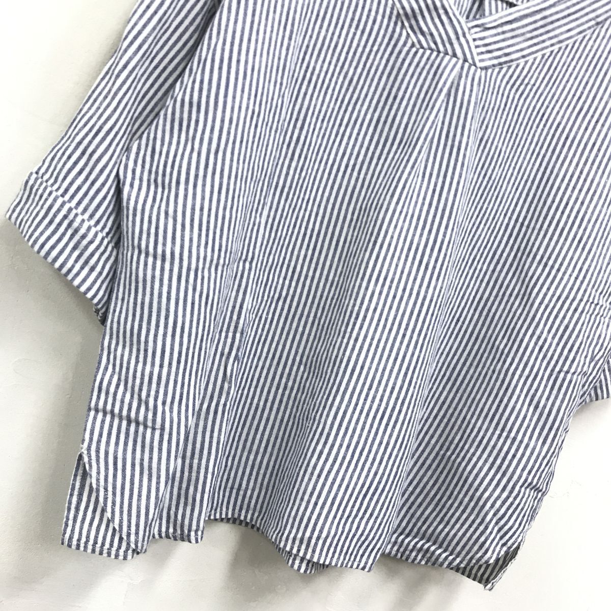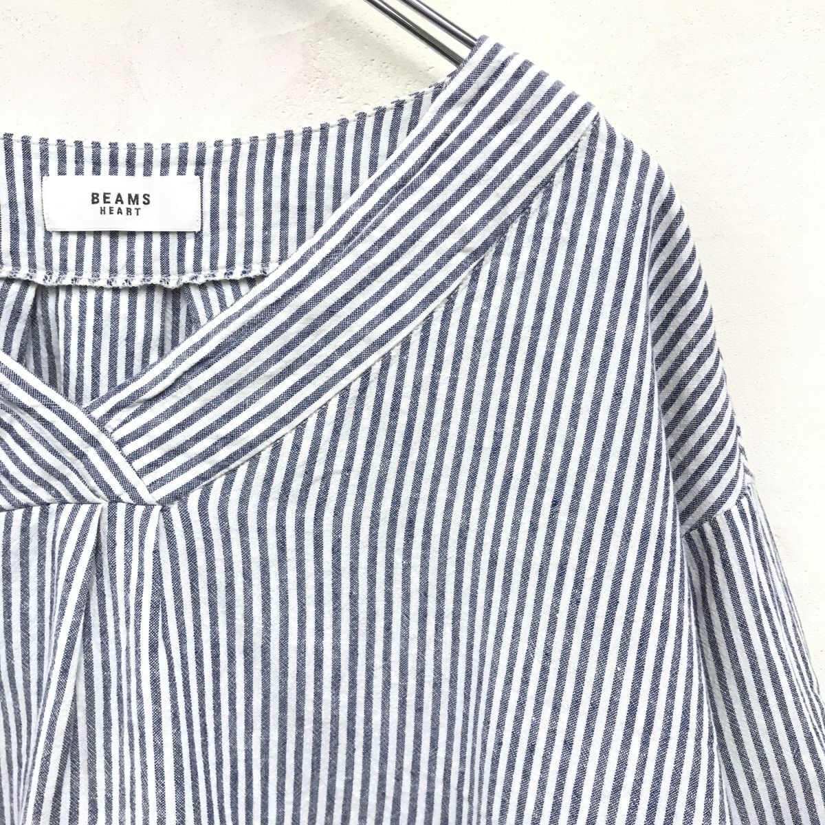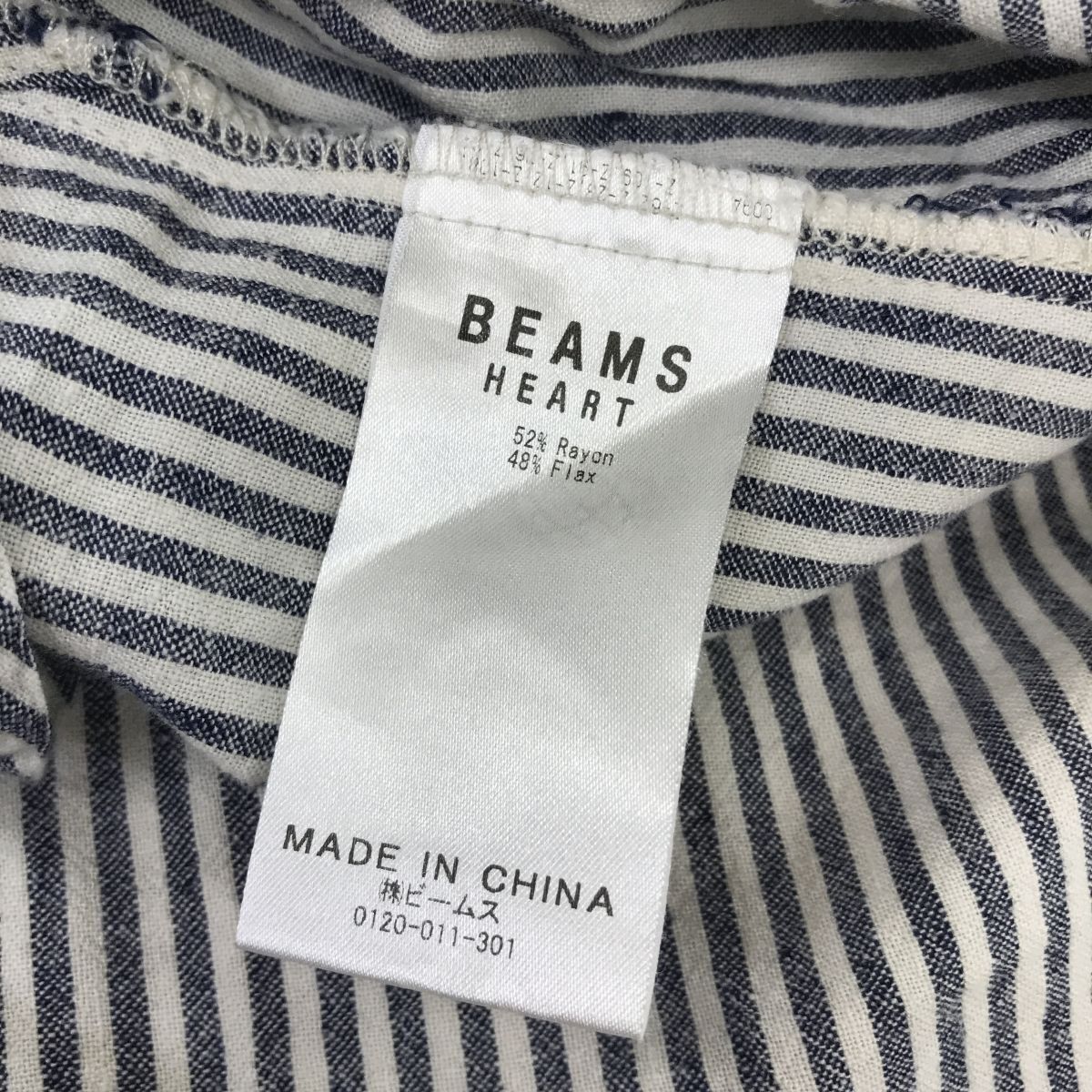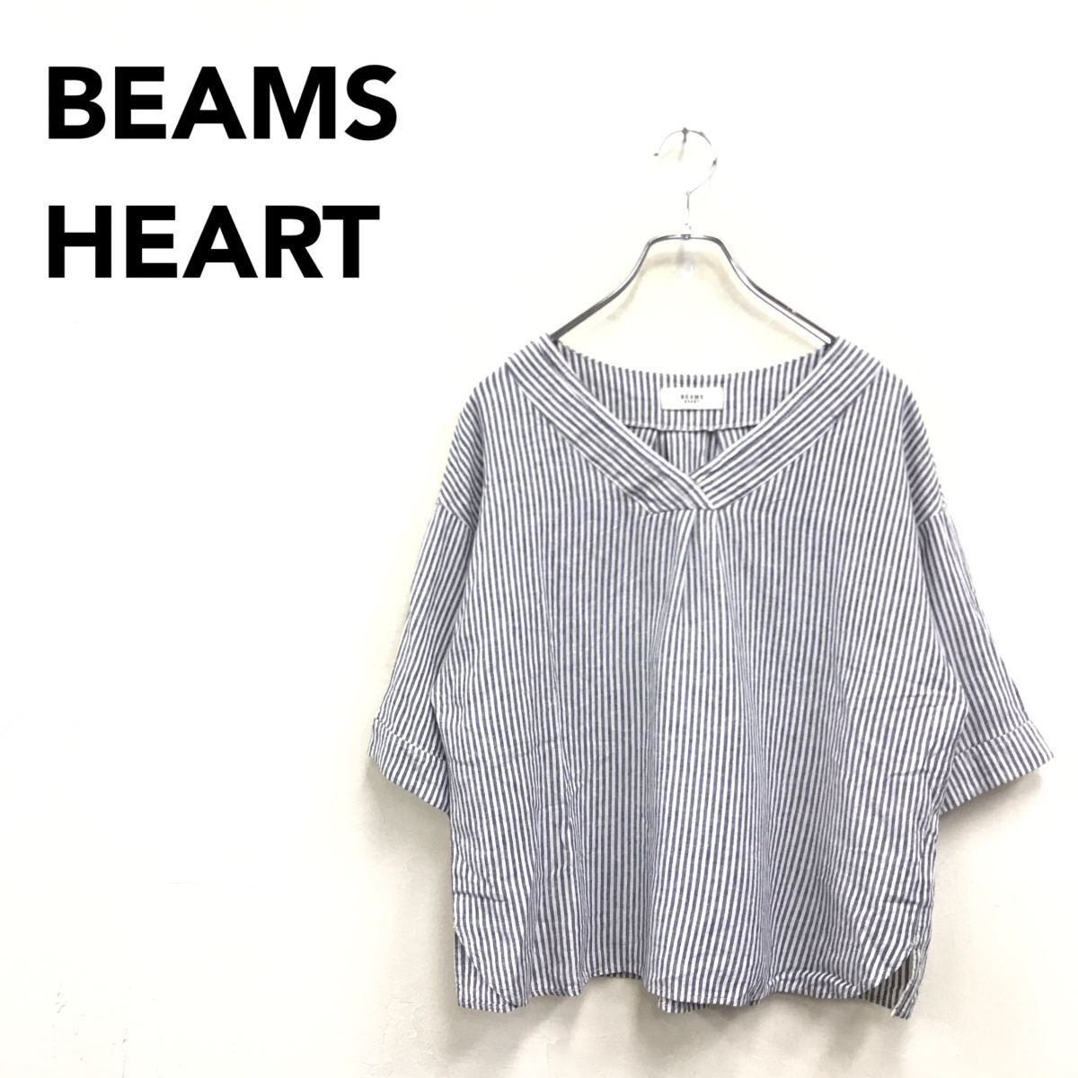 2H2626-R-N◆BEAMS HEART ビームスハート 半袖カットソー◆レディース 婦人 トップス ストライプ 麻混 リネン 春夏 グレー