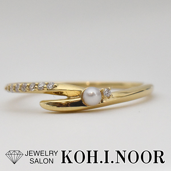 パールとダイヤをセットしたエテの18金製ファッションリング。