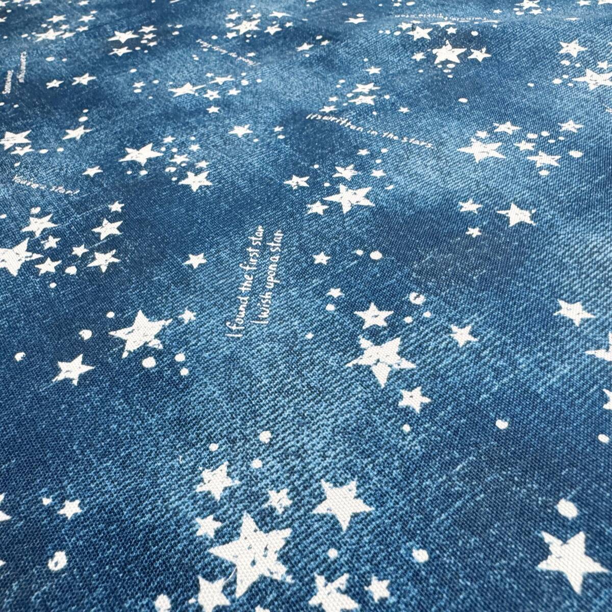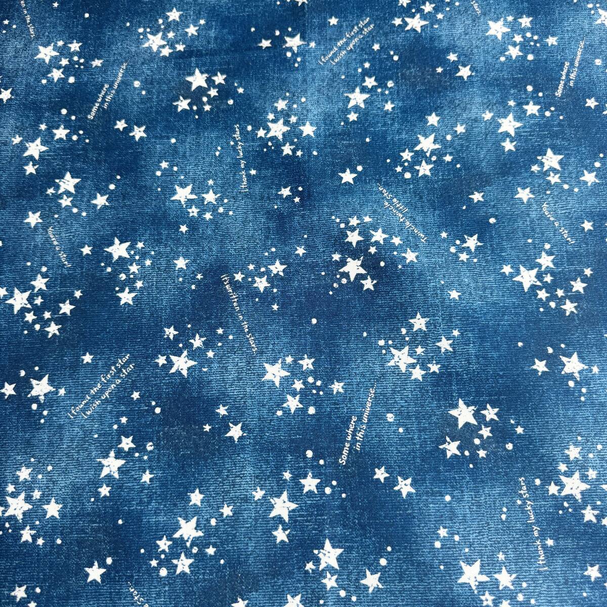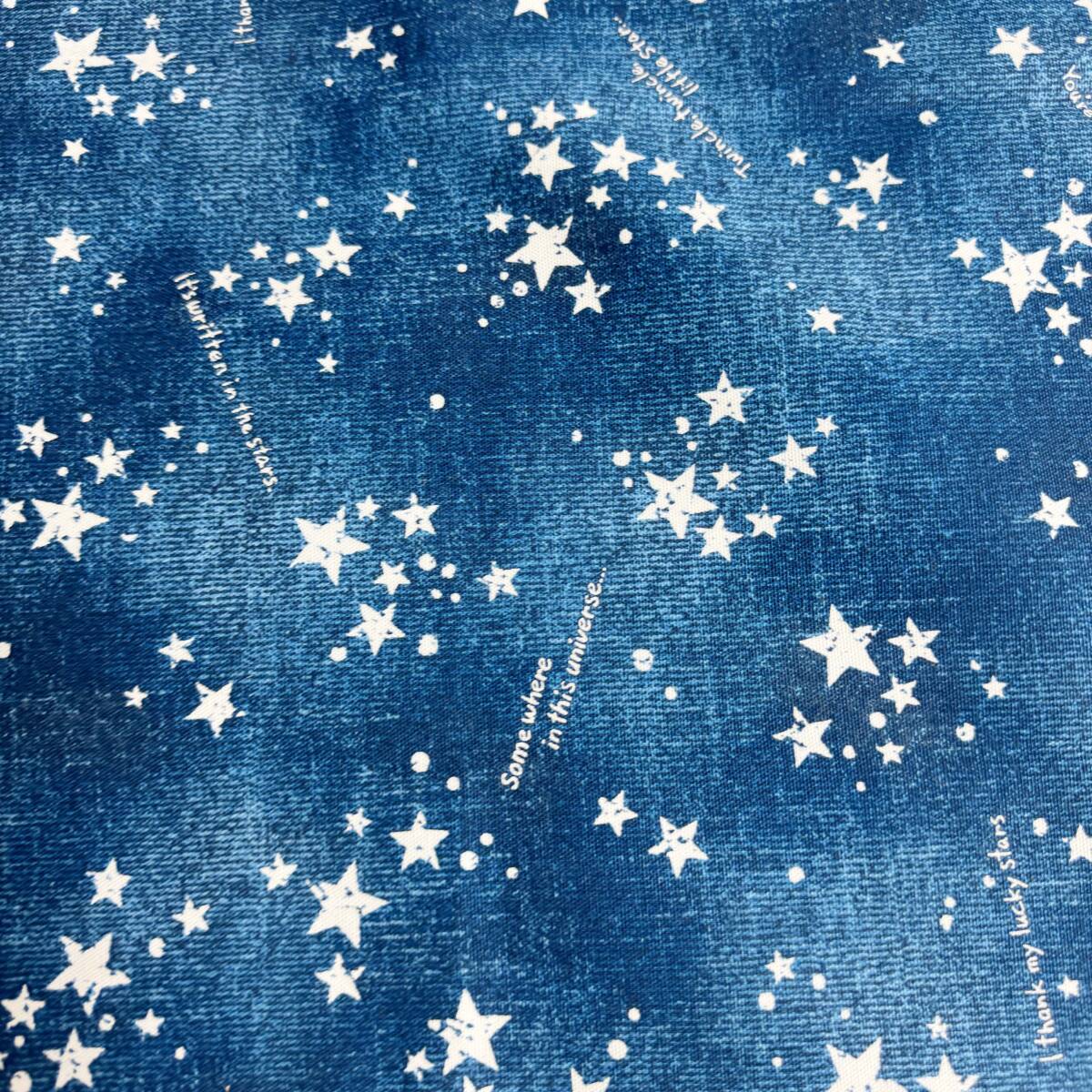 ラス1★星空デザイン英字入り★ブルー系オックス生地48cmはぎれ布