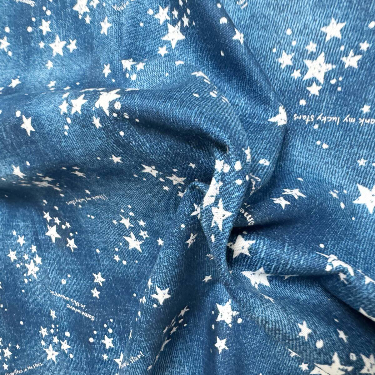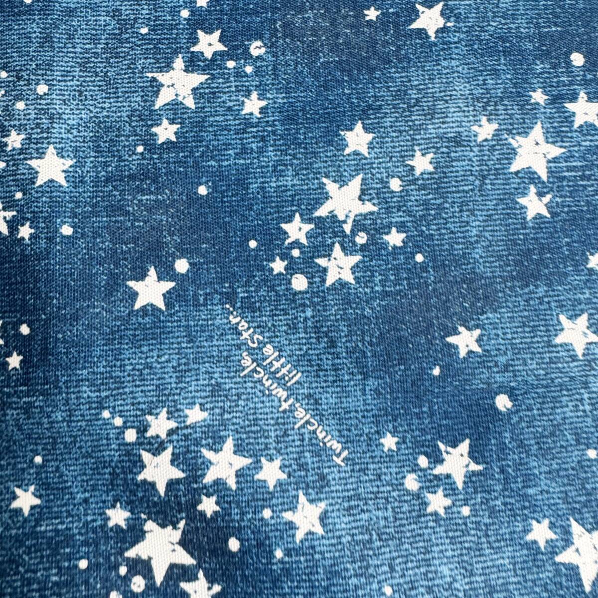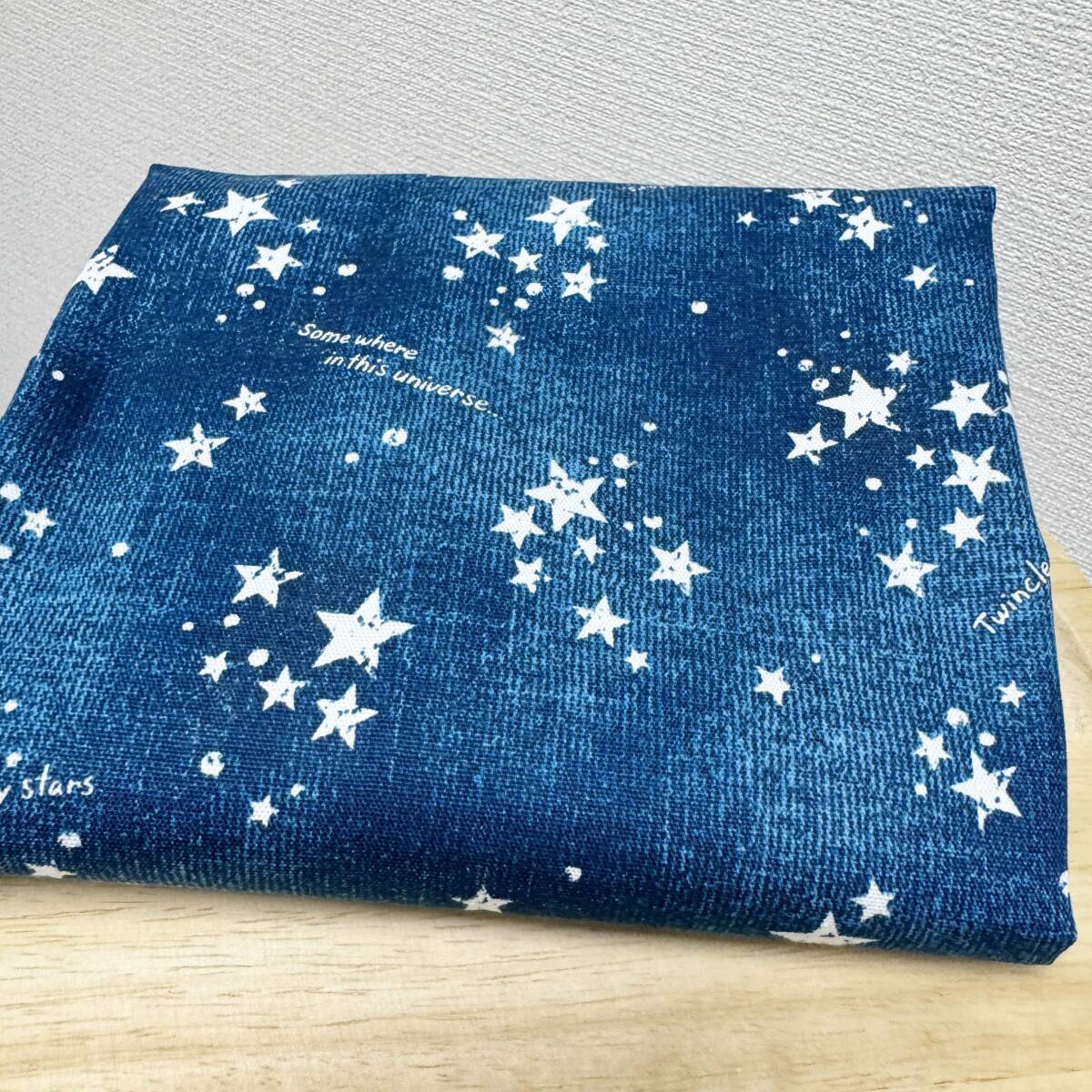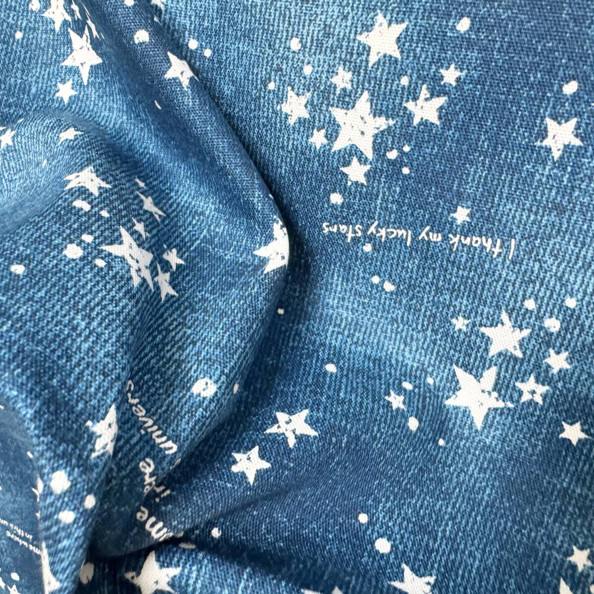 ラス1★星空デザイン英字入り★ブルー系オックス生地48cmはぎれ布