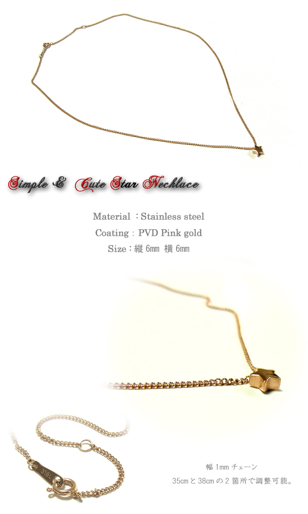 ステンレスネックレス プチピンクゴールドスター