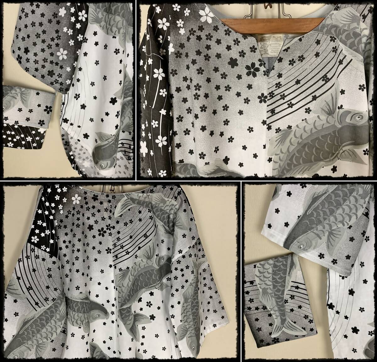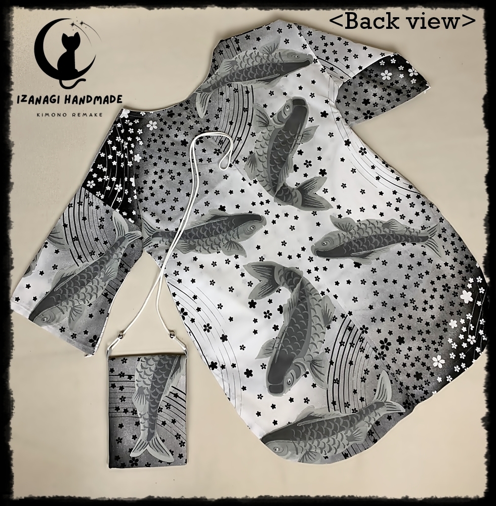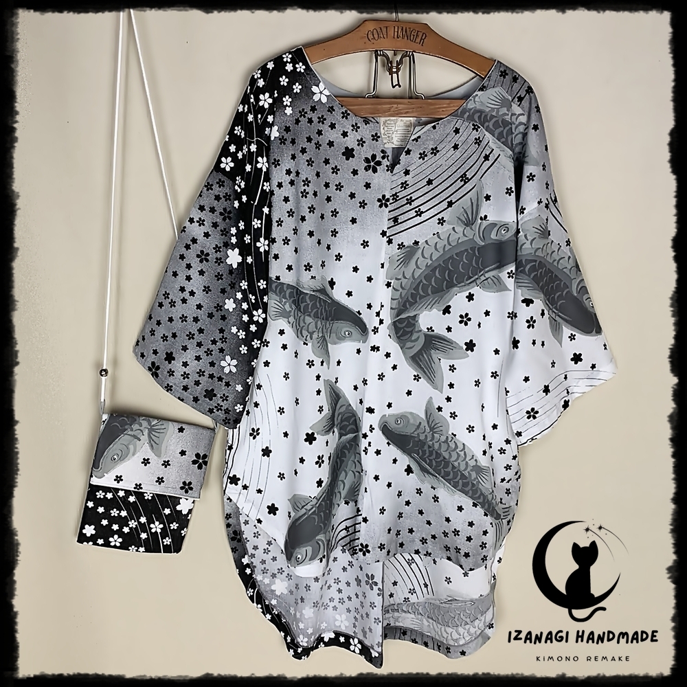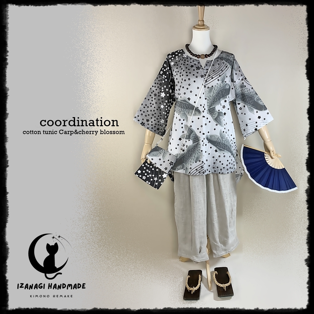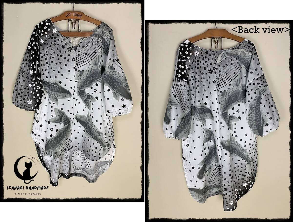 ※半額SALE※ハンドメイド 鯉に桜吹雪コットンプルオーバーチュニック 手作り