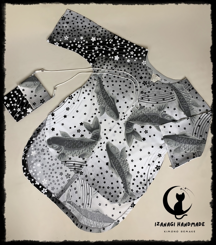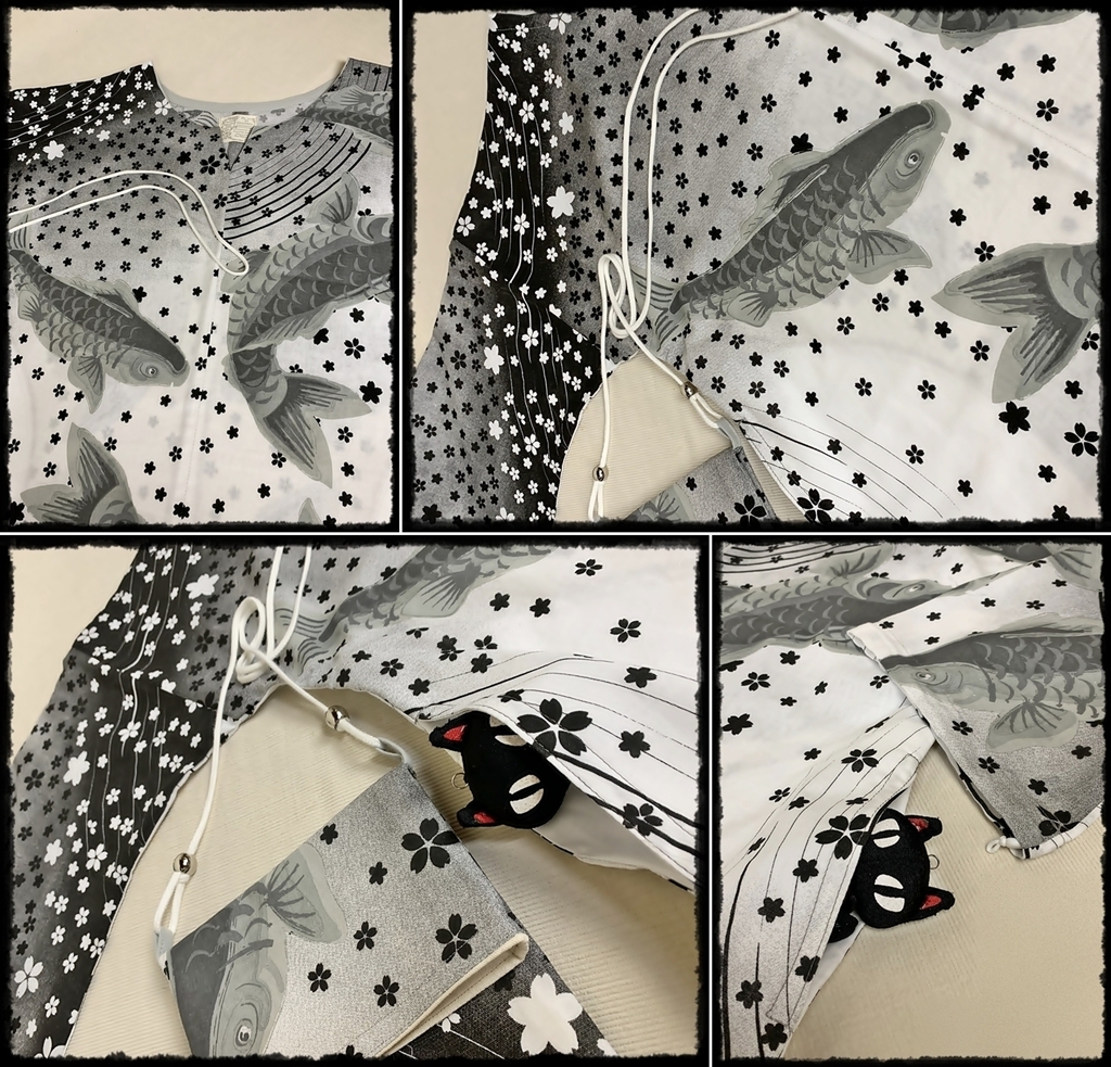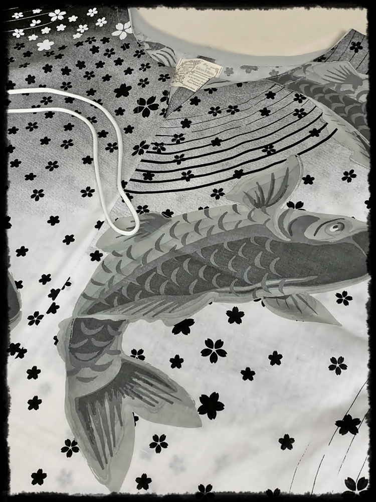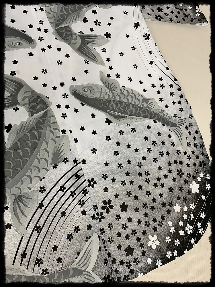 鯉と桜吹雪の素敵な和柄、モノトーン