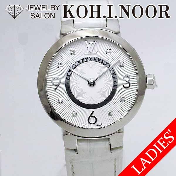 モノグラムパターンにダイヤインデックスをセットしたタンブールスリム。