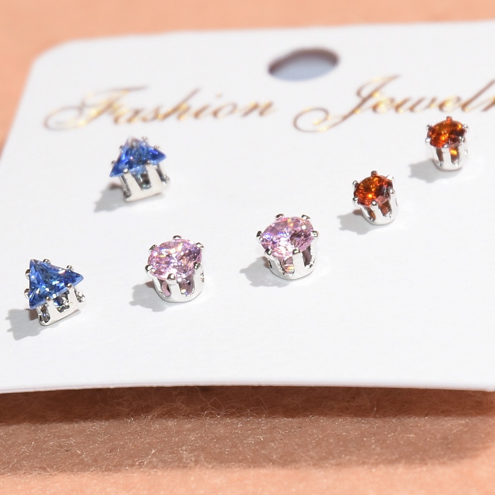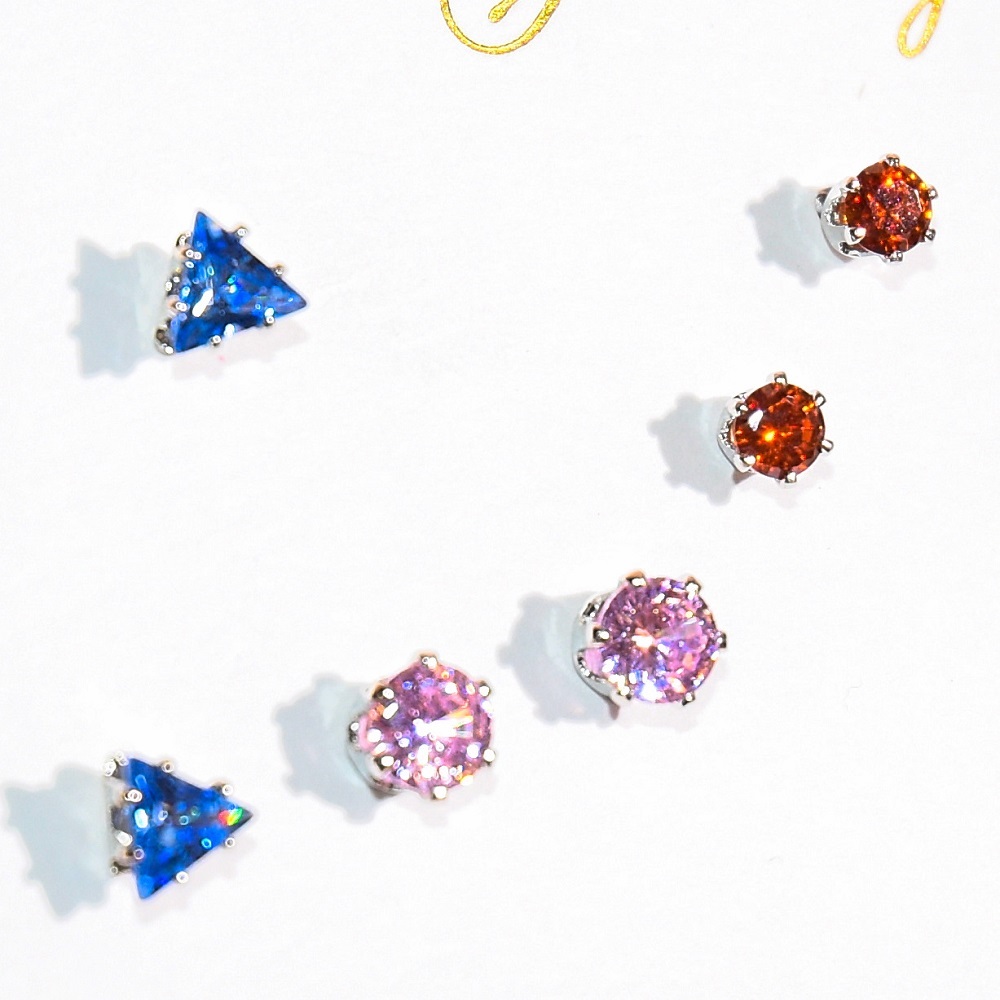 カラーストーンでデザインされた、かわいいスタッドピアス、3点セットです♪