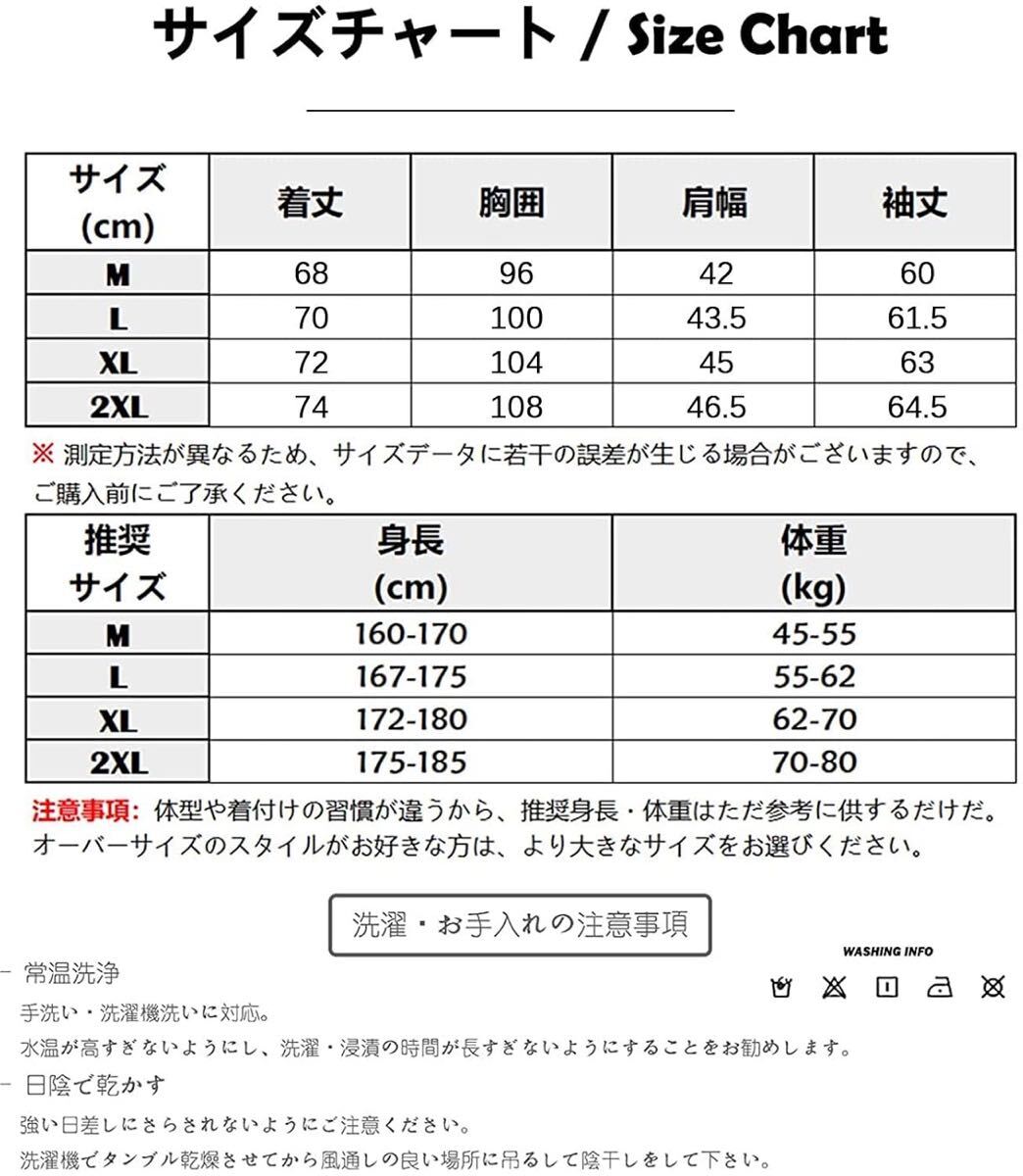 【XL】適応身長:172-180cm 体重:62-70kg 着丈:72cm 胸囲:104cm 肩幅:45cm 袖丈:63cm.