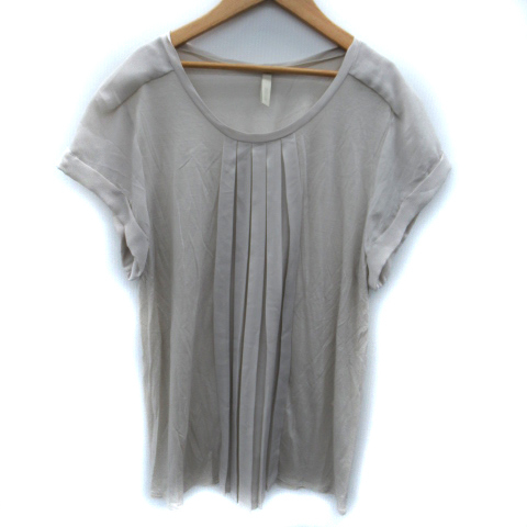 アンタイトル UNTITLED カットソー 半袖 プリーツ 切替 44 XXL 大きいサイズ グレージュ /SM30 レディース