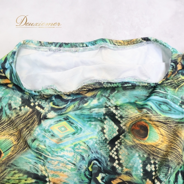 | 【商品名】ベリーダンス衣装 トップス チューブトップ 【サイズ】 平置き実測:総丈(長い部分)約75cm、総丈(短い部分)約25cm、身幅約29cm ※実測の為、多少の誤差はご了承ください ※袖を通す部分はございません。 【仕様】 ・伸縮性有り ・胸パッド無し ------------------------------------ 【ポイント】 ▽緑×オレンジ ▽孔雀柄がオシャレ ▽練習着、イベント等に! ------------------------------------ 【撮影時使用トルソー】 種 類:女性用トルソー9号 (一般的に使用されるサイズです) サイズ:肩幅約37cm、バスト約88cm、ウエスト約66cm、ヒップ約89cm  |