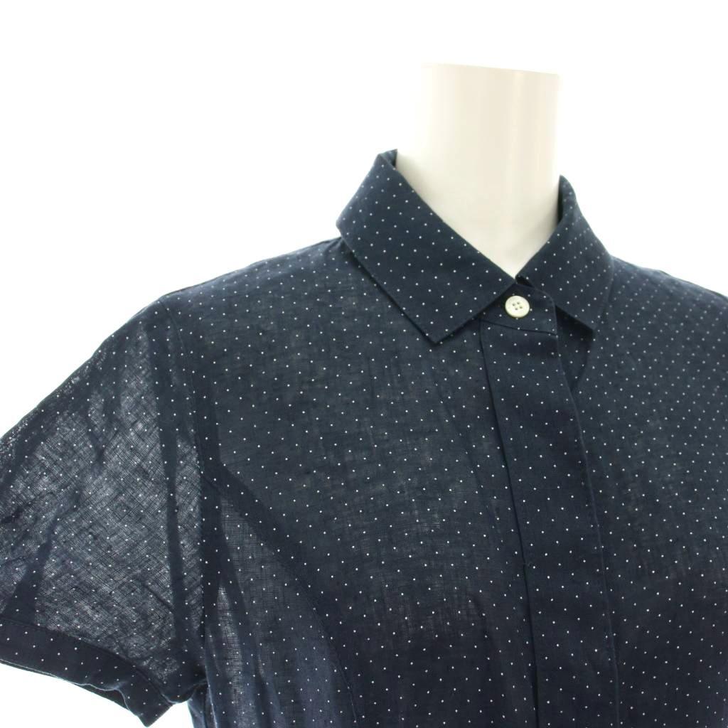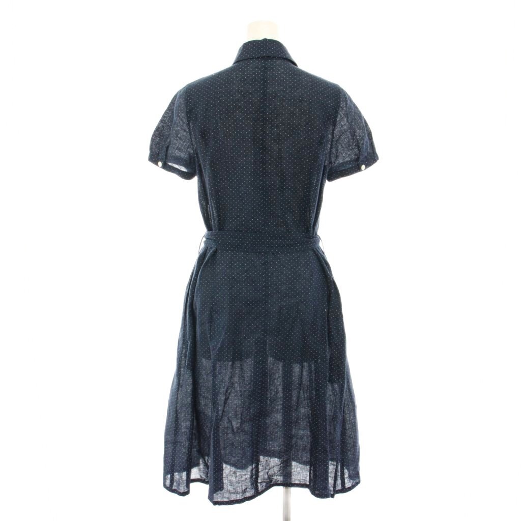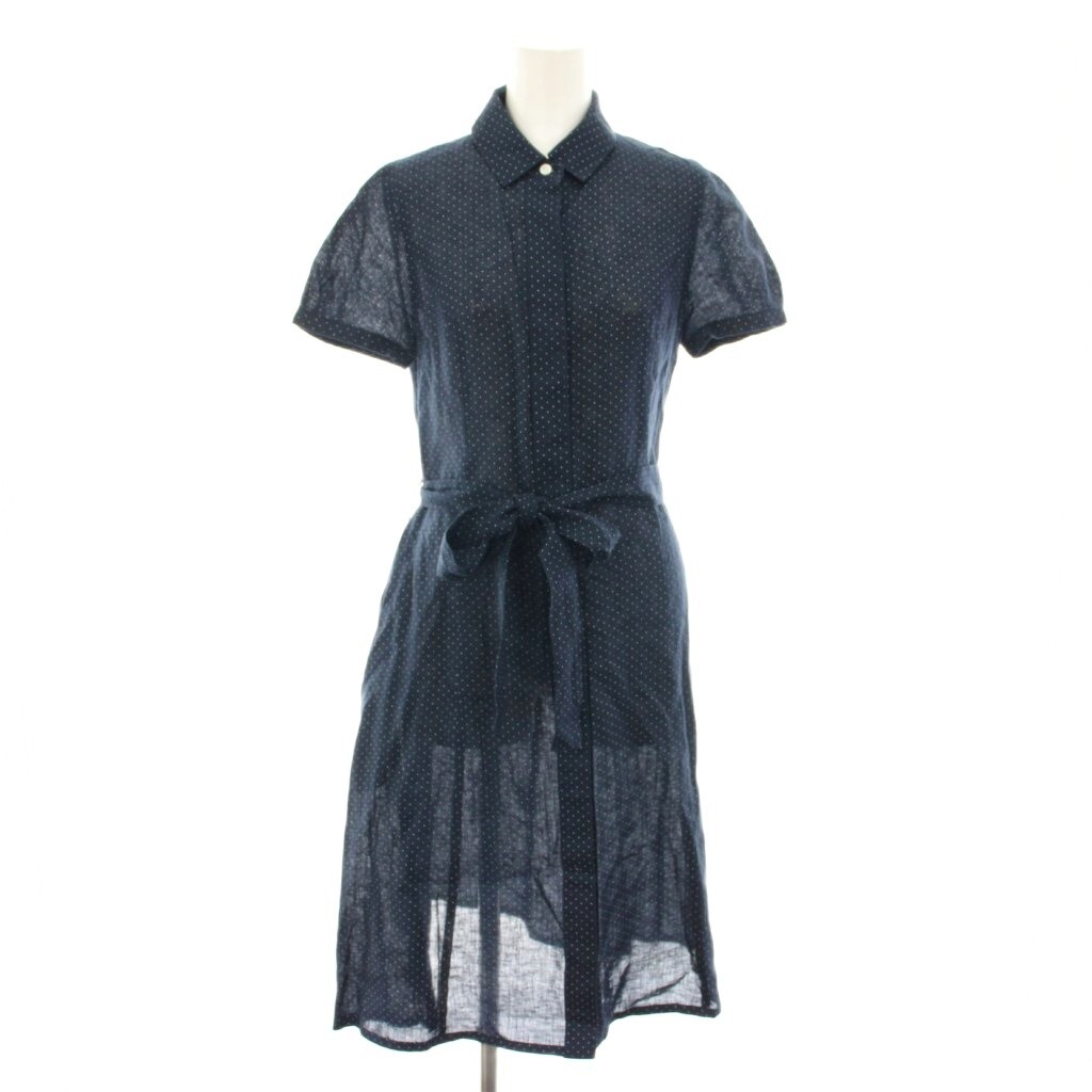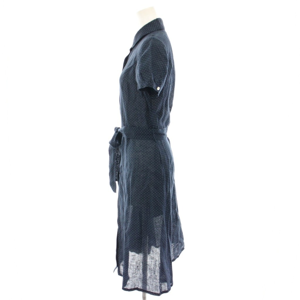 オールドイングランド OLD ENGLAND シャツワンピース ひざ丈 半袖 ドット柄 リボンベルト 麻 リネン 36 紺 55108641 ■MU レディース