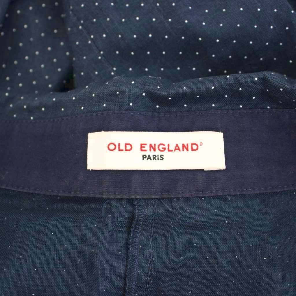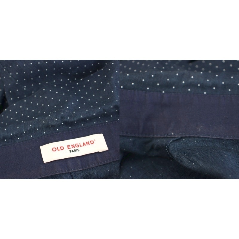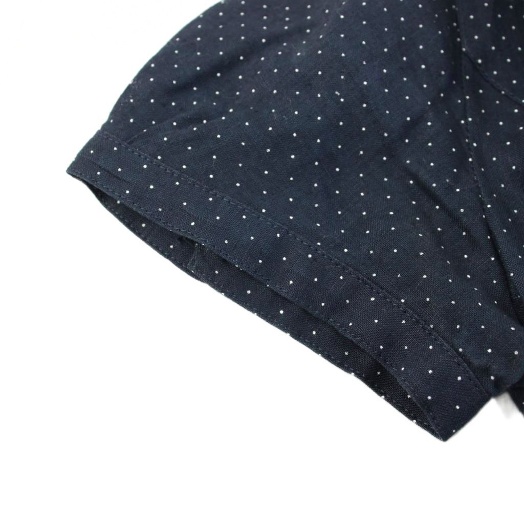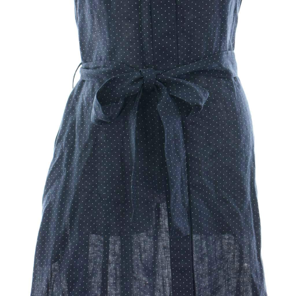オールドイングランド OLD ENGLAND シャツワンピース ひざ丈 半袖 ドット柄 リボンベルト 麻 リネン 36 紺 55108641 ■MU レディース