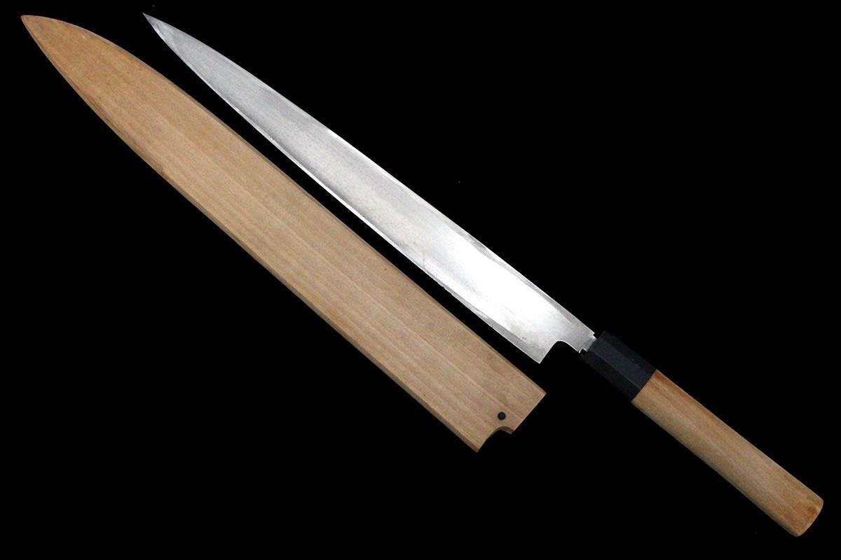 有次 柳刃包丁 本焼 尺一 純日本鋼 朴柄 白鞘付