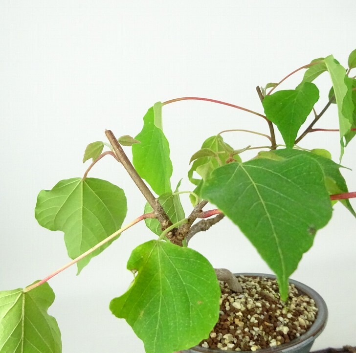 | ■植物ですので撮影時期や季節によって剪定などの手入れにより写真から変化がございます。撮影日をご確認のうえ、ご注文ください。 【アカメガシワ盆栽】 雌雄異株。 葉と種子は染料、樹皮は健胃の生薬になる。 名前の由来は新芽が鮮紅色であること、葉がカシワのように大きくなることから。 別名:ゴサイバ(五菜葉)他にも地方名を多く持つ。 |