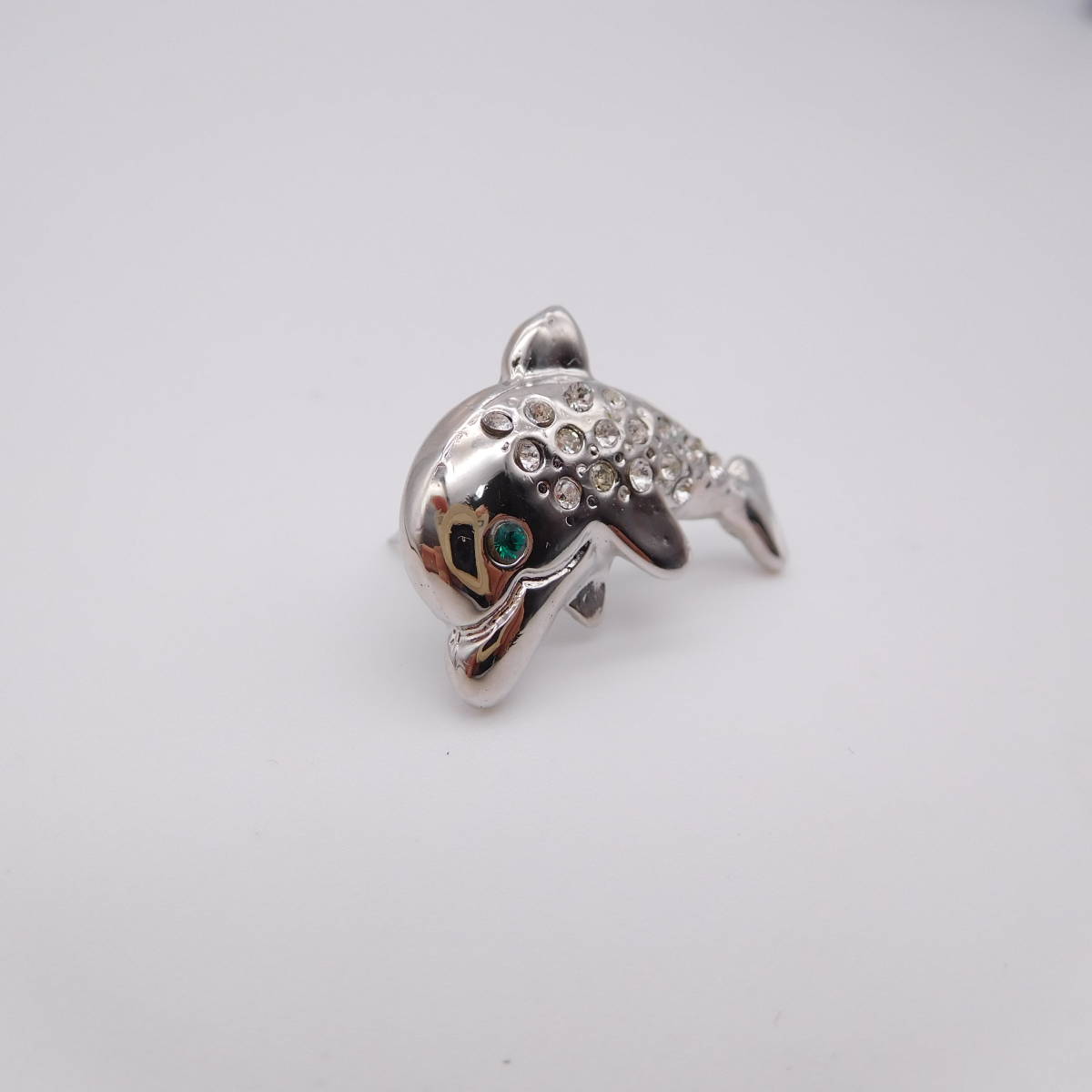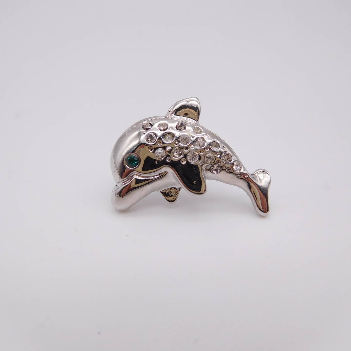 ★新品★ ドルフィン(イルカ) ピンブローチ・ピンバッチ・ラペルピン ラインストーン 日本製