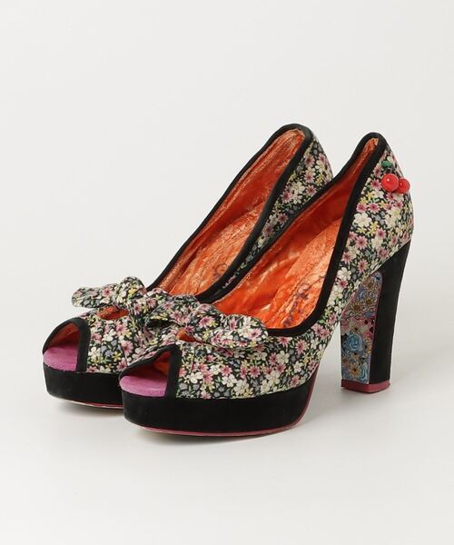 「Irregular Choice」 花柄オープントゥパンプス 39 ブラック レディース