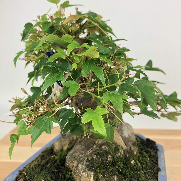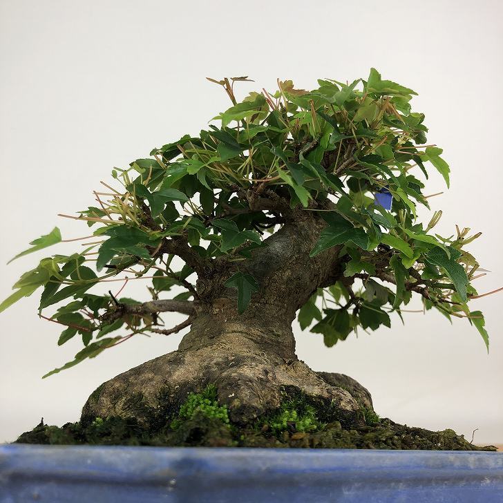 ■植物ですので撮影時期や季節によって剪定などの手入れにより写真から変化がございます。撮影日をご確認のうえ、ご注文ください。 ■春頃~7月上旬。葉すかし、葉刈りをおこないます。目的として全体的な枝や葉の量を減らし風通しを良くし、幹にしっかりと日光を当てるため。 【楓盆栽】 春先に芽吹き、夏頃には新緑、秋頃には紅葉、冬は寒樹姿と四季を通して楽しめる植物です。 |