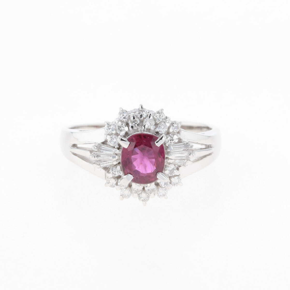 ルビー デザインリング プラチナ 指輪 メレダイヤ リング 10.5号 Pt900 ルビー ダイヤモンド レディース 【中古】 |