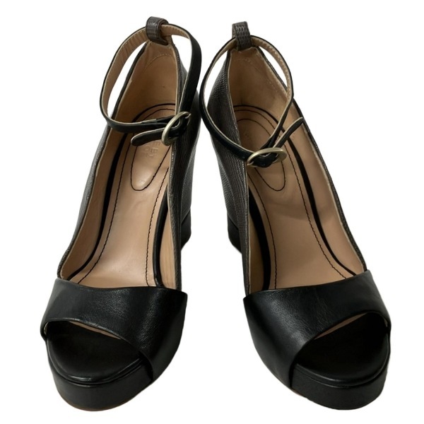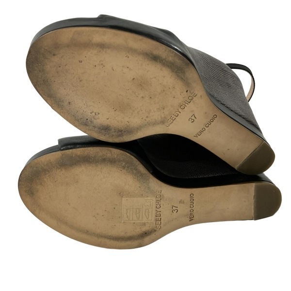 シーバイクロエ SEE BY CHLOE パンプス 37 - レザー ダークブラウン×黒 レディース オープントゥ/ウェッジソール 靴