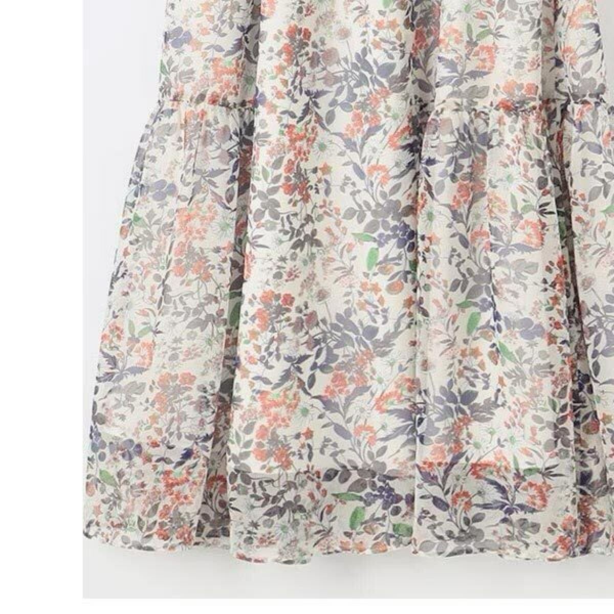様々なお花や葉のモチーフのボタニカル柄を、流れのある繊細なタッチで表現したティアードスカートです。