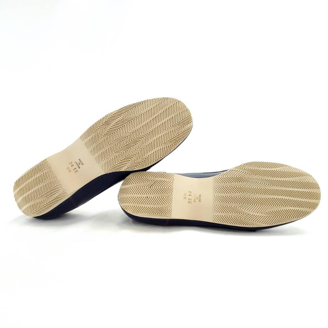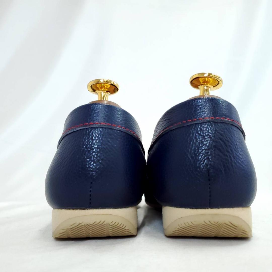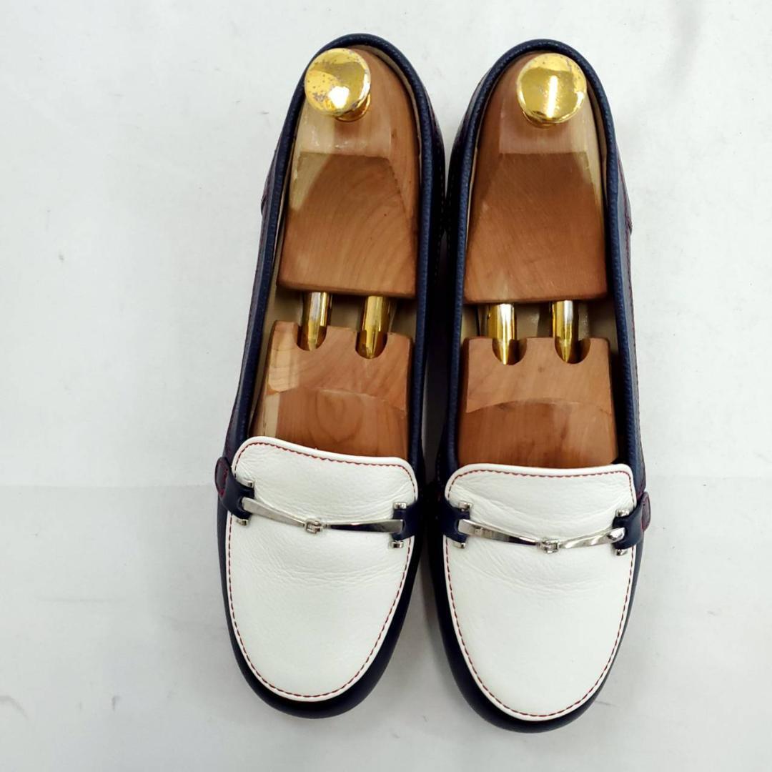 ネイビー×ホワイトの爽やかな配色に、シルバービットがアクセント。フラットすぎず履きやすい、程よいローヒール。