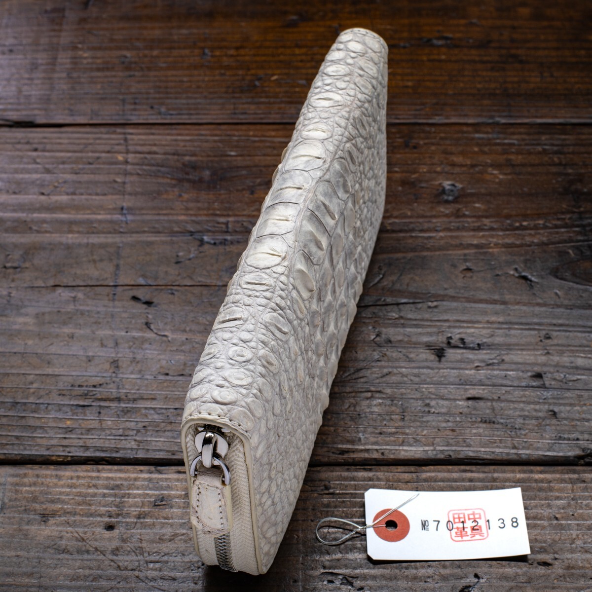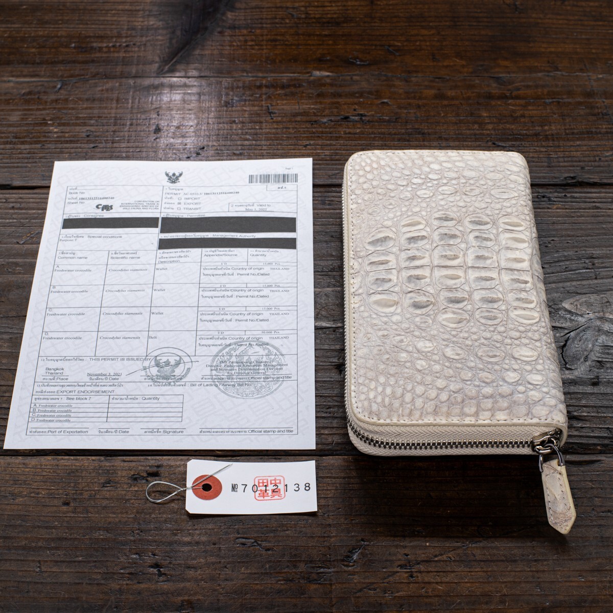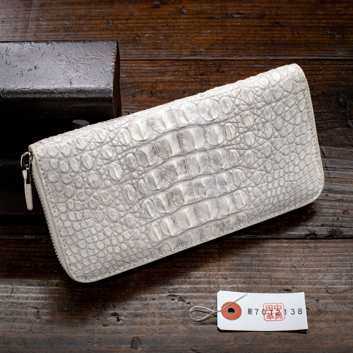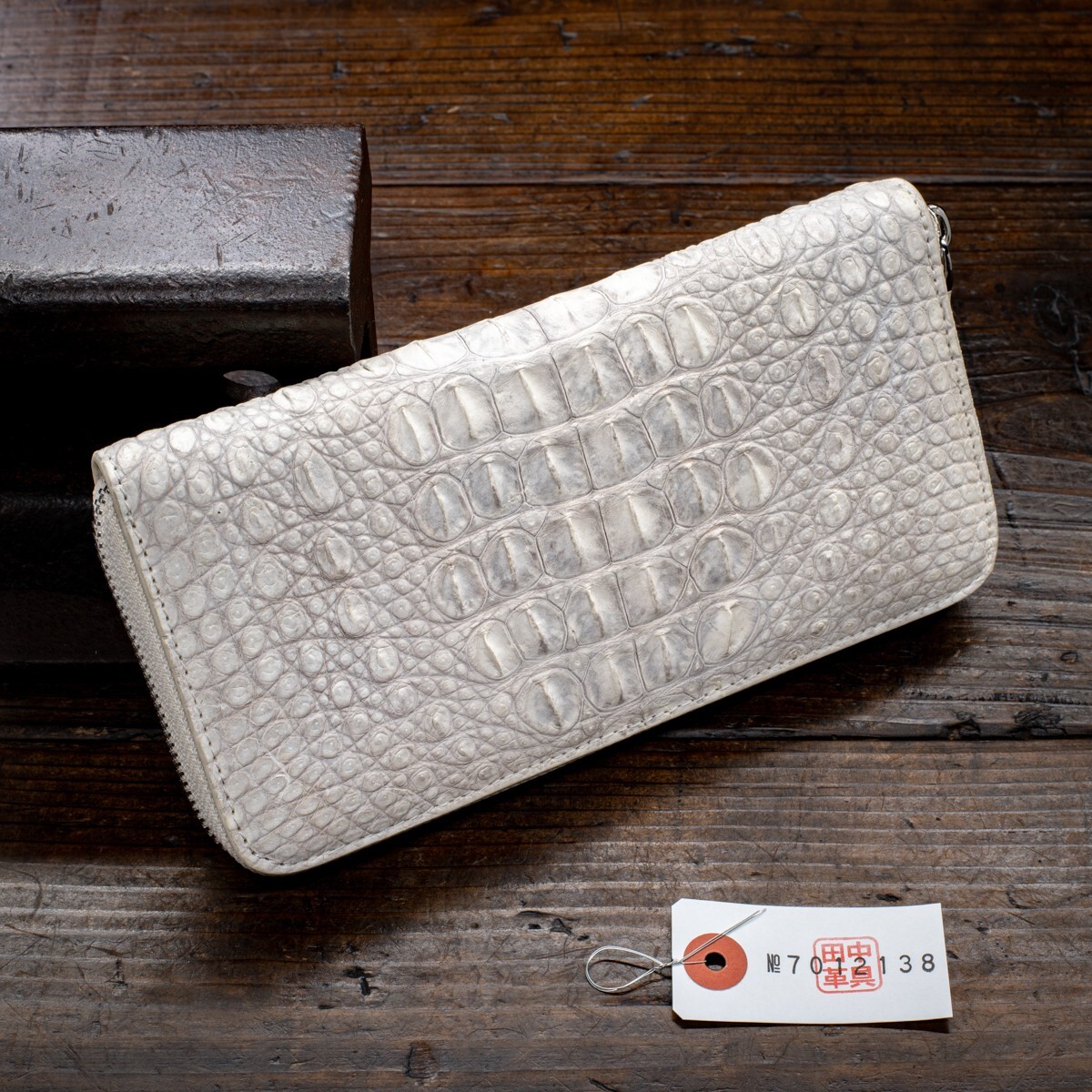 クロコダイル【ヒマラヤ】メンズ 長財布 ラウンドファスナー 新品 未使用 送料無料 1円 鰐 ワニ ホワイト 白 実物撮影 田中革具