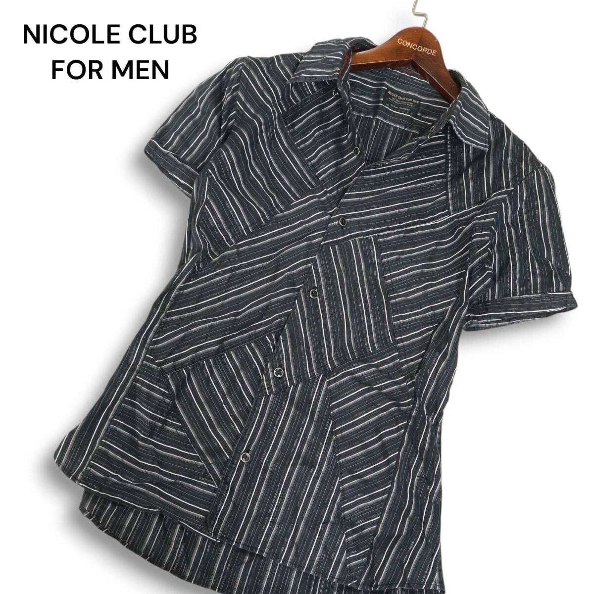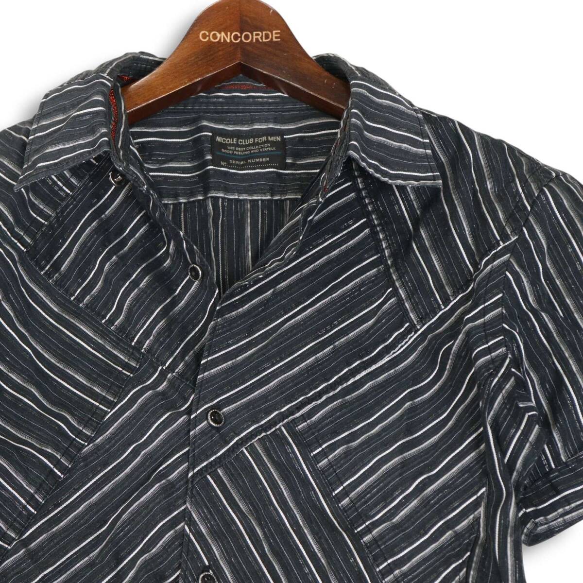 Y2K 00s★ NICOLE CLUB FOR MEN ニコルクラブ フォーメン ランダムパッチワーク★ 半袖 ストライプ シャツ Sz.48 メンズ