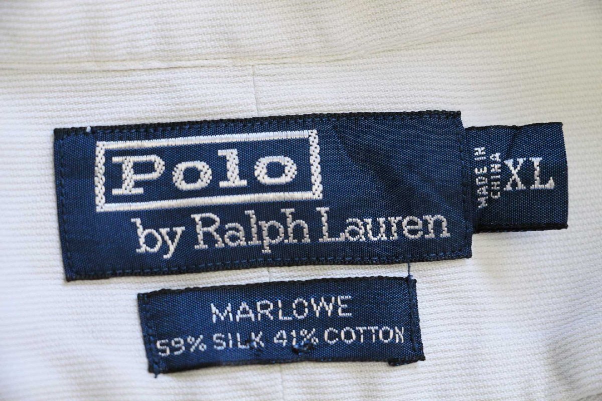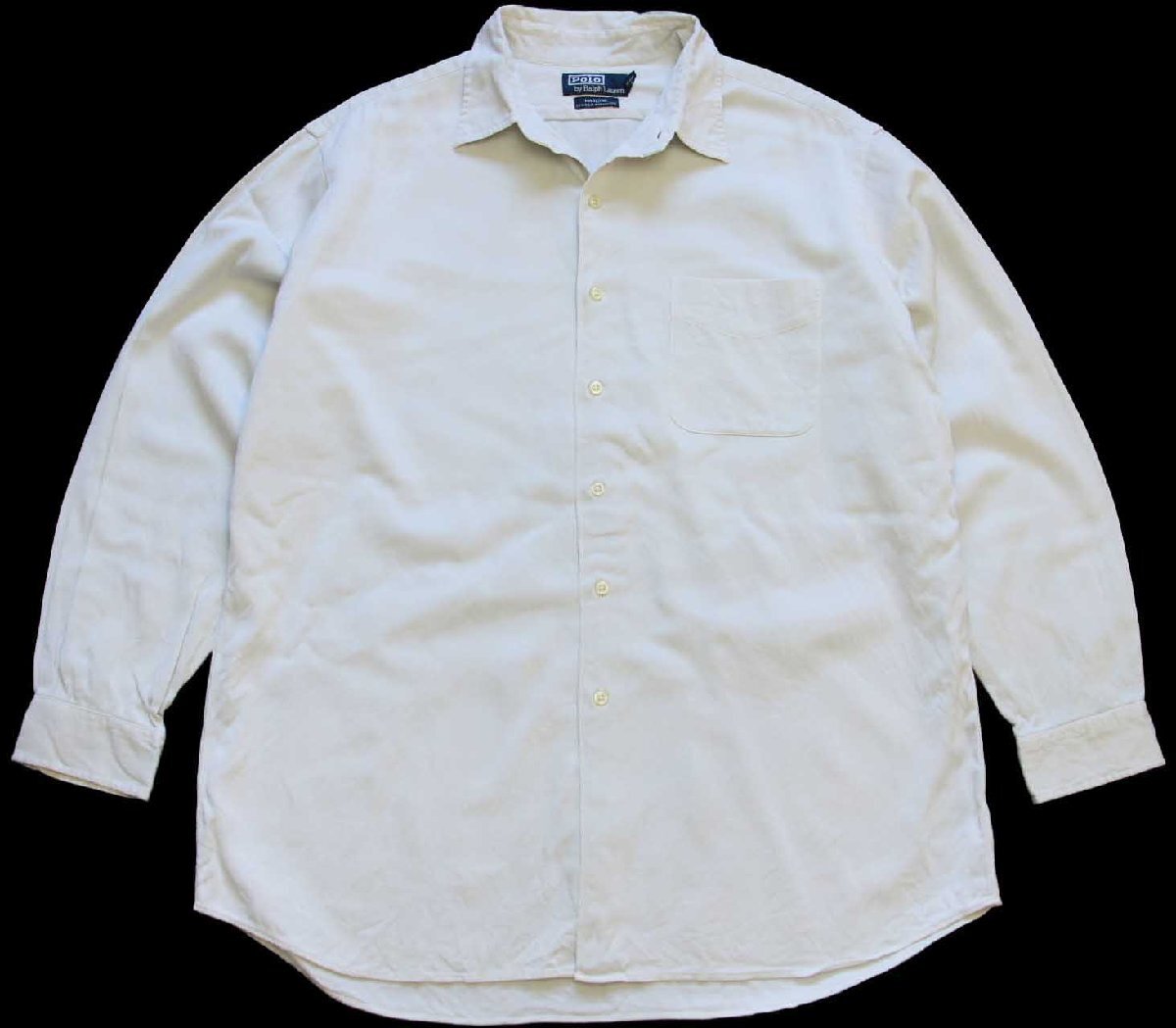 ★00s ポロ ラルフローレン MARLOWE ポケット付き シルク×コットンシャツ オフホワイト XL★オールド ピケ 無地 ビッグサイズ