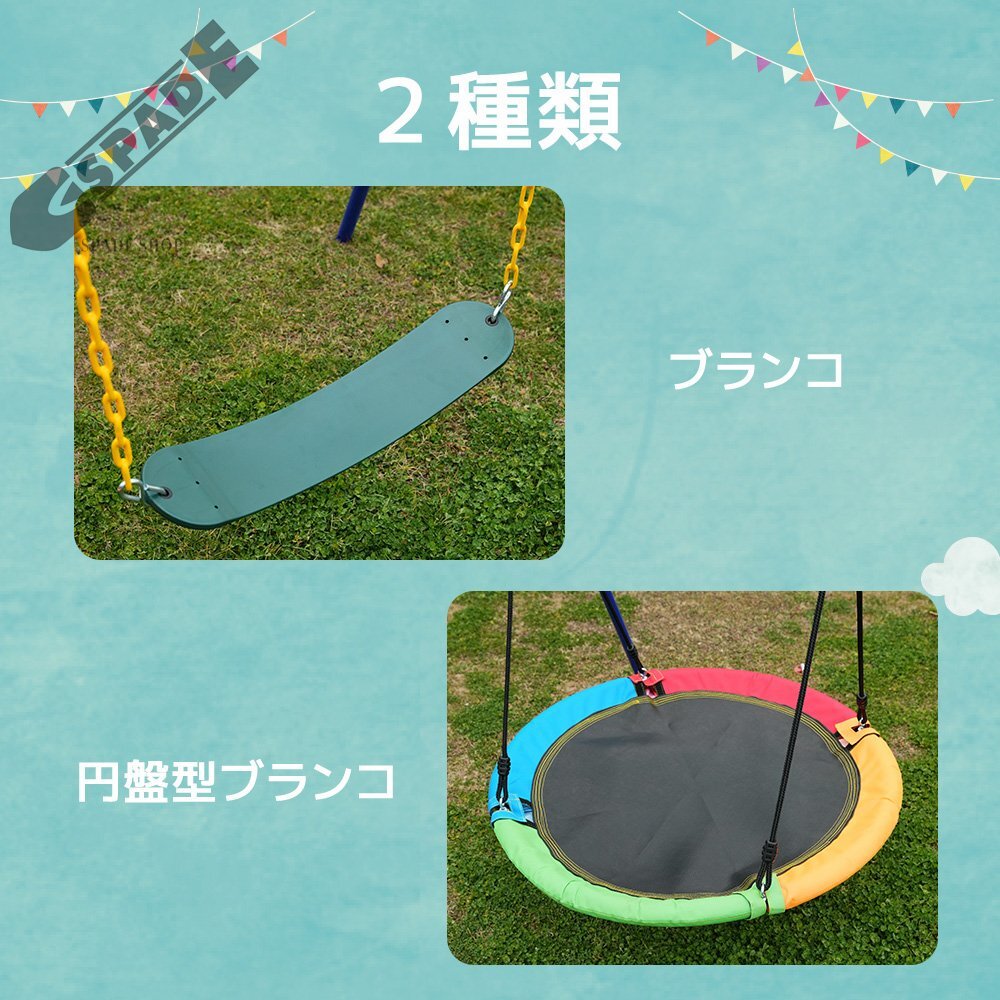 • 【ブランコ】ブランコに乗ったり、押してあげたりすることで、家族の絆を深めることができます。また、ゆっくりと揺れることで、疲れた日のリラックスタイムにも最適です。2種類ブランコを設置 より多くの遊び方!円盤型ブランコに乗ってリラックスするのは、とても心地よいです。全身を横たえながらゆったりとくつろげるので、気持ちがリフレッシュされます。厚みのあるポリエステル布を使用し、着座感が快適です。子供たちの活発な動きにも耐えられる丈夫な素材で、破れにくいため、長期的な使用にも最適です。ブランコに乗ることで、大きな楽しさを感じることができ、バランス感覚が養われます。座席部分は柔らかく快適なEVA素材を採用。身体機能強化に役立つだけでなく、モノレールの滑らかな動きにより、よりスムーズな揺れ感を提供します。おうち時間、も~っと楽しくなる