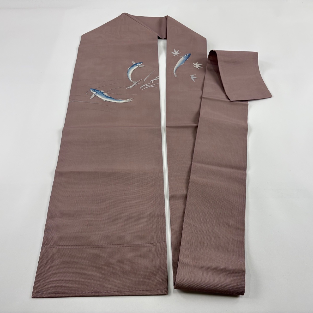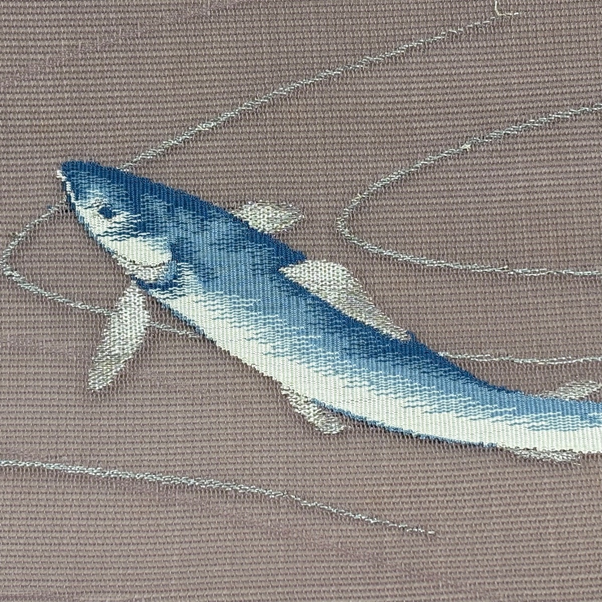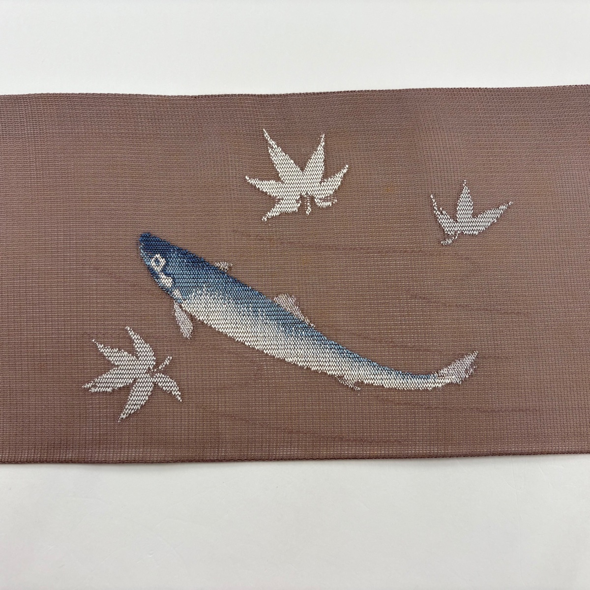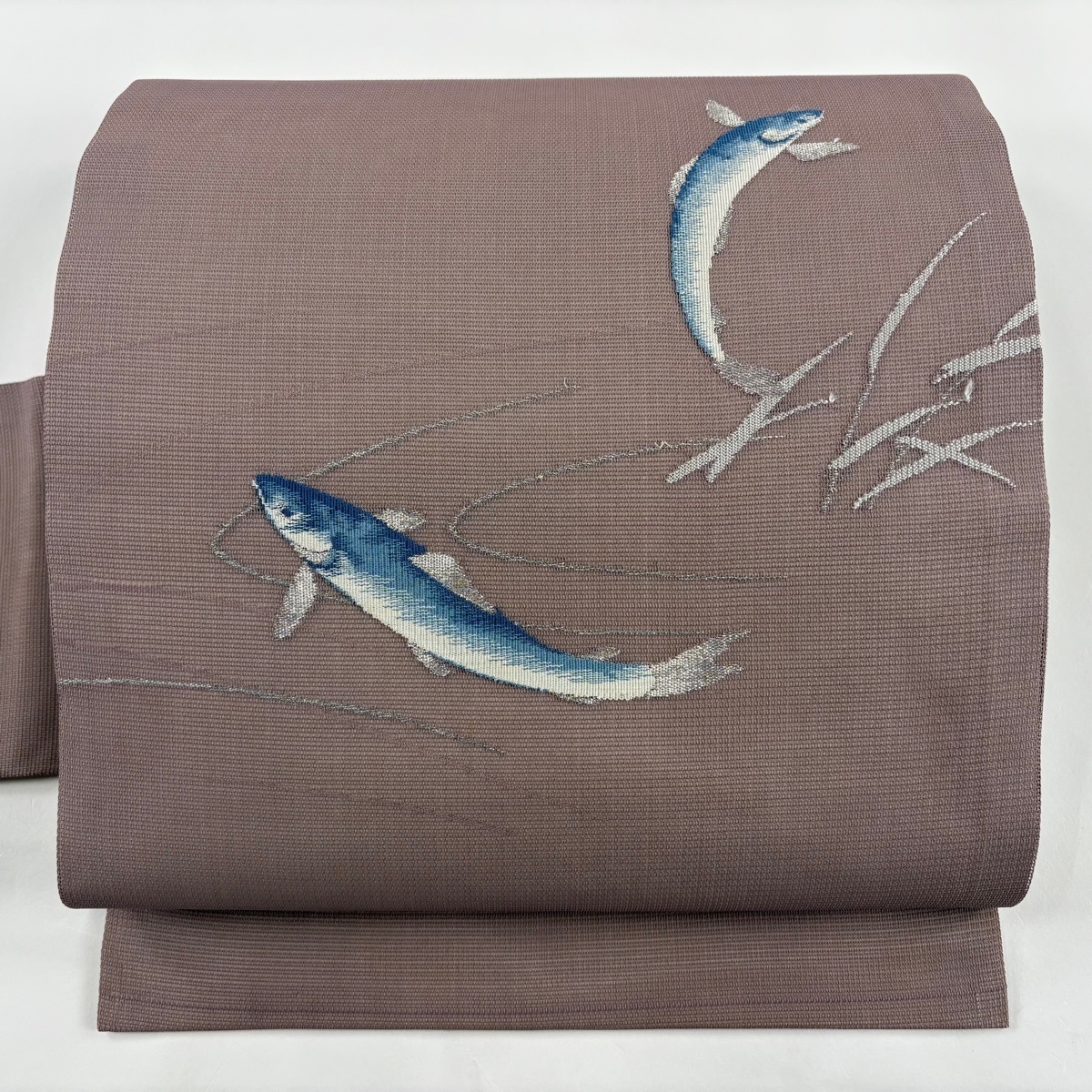 | 名古屋帯 秀品 夏帯 紗 関西仕立て 魚 流水 銀糸 箔 灰紫 正絹 【中古】 |