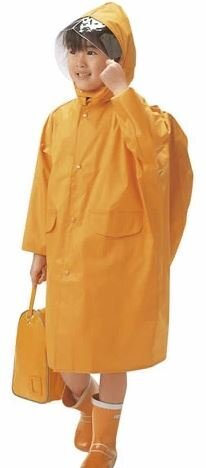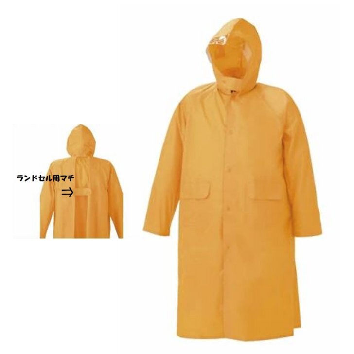 リュックサックやランドセルを背負ったまま着用できる背タック付きの通園通学向け子供用防水レインコート。