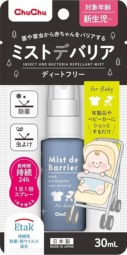 【赤ちゃん用虫よけ防菌ミスト】 チュチュベビー ミストデバリア30mL Etakイータック 持続性防菌・防ウイルス+虫よけ【虫よけ 防菌】
