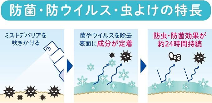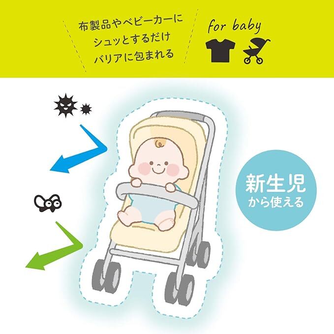 布製品やベビーカーにシュッとするだけでバリアに包まれる。