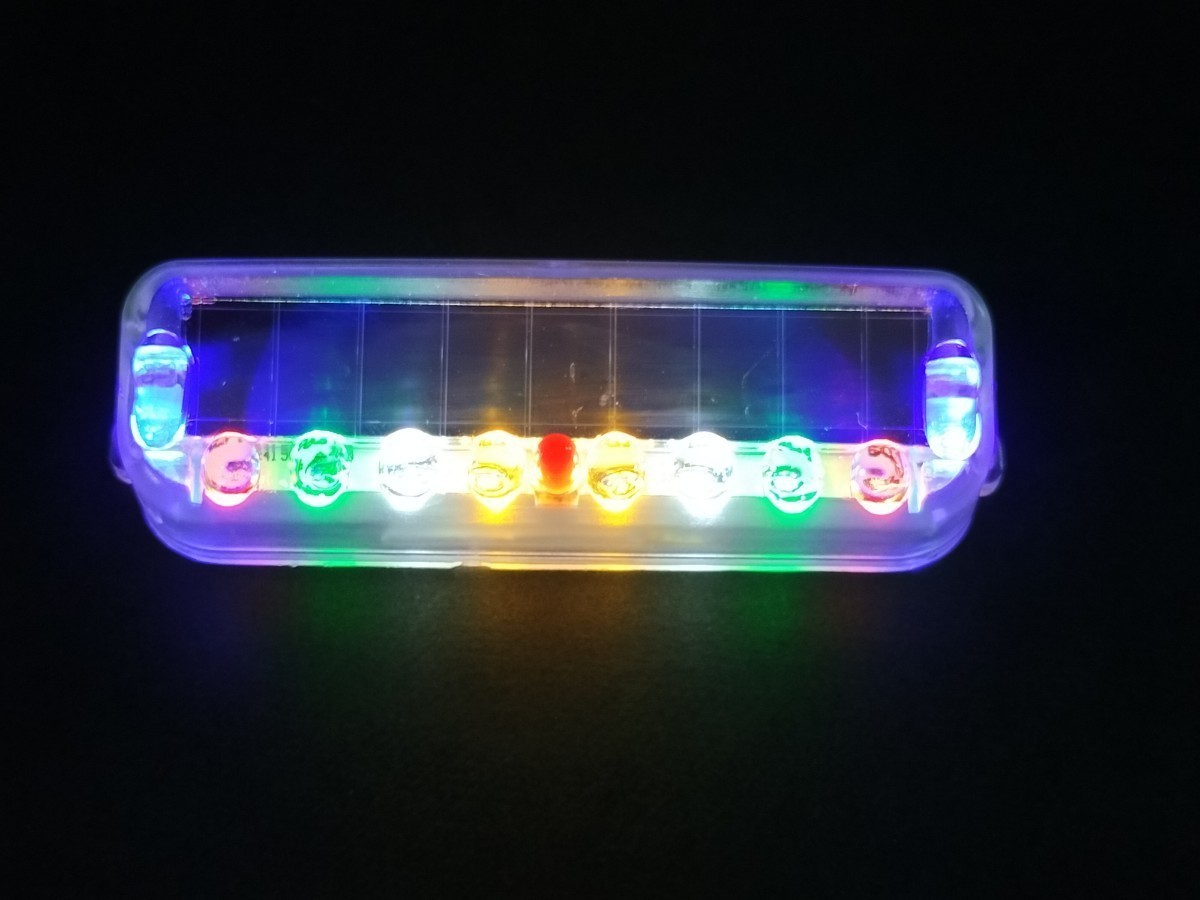 真ん中の赤いボタンを押すと7色のランプが点灯、点滅したり、