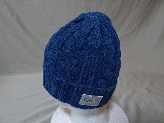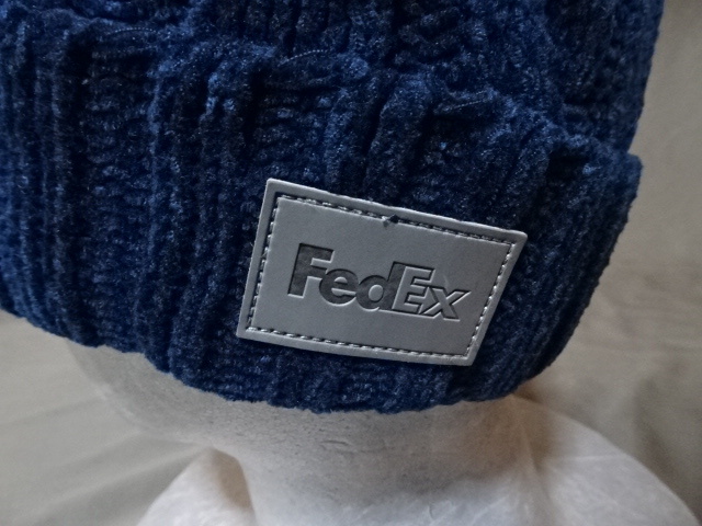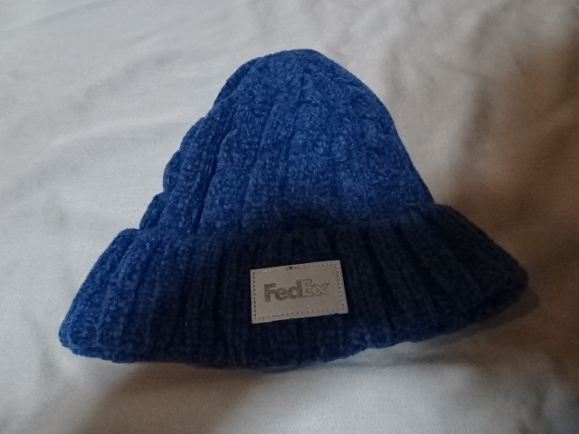激レア USA購入 アメリカ企業モノ 世界最大手 物流サービス フェデックス 【FedEx】 ロゴマークワッペン付 ニットキャップ 青系 中古品