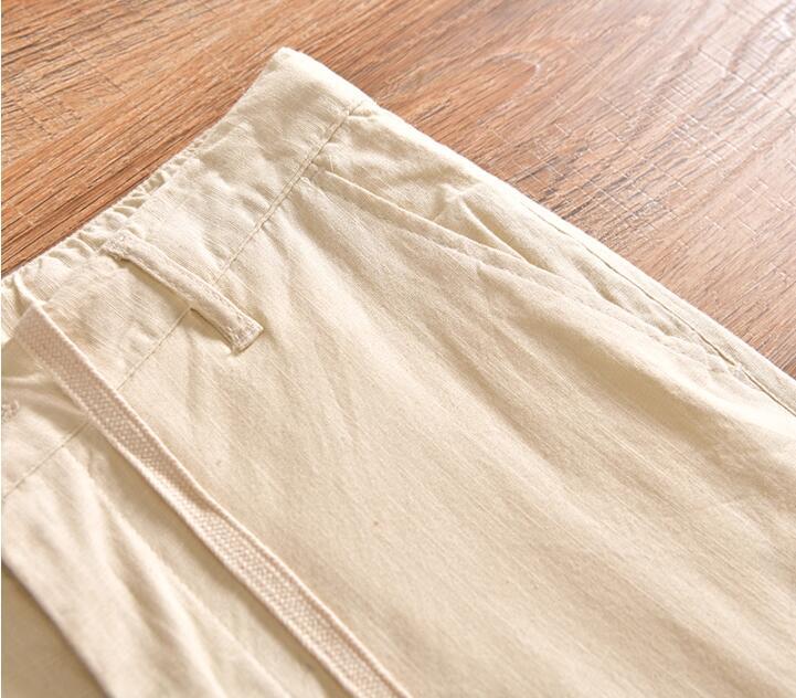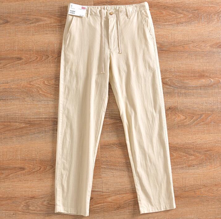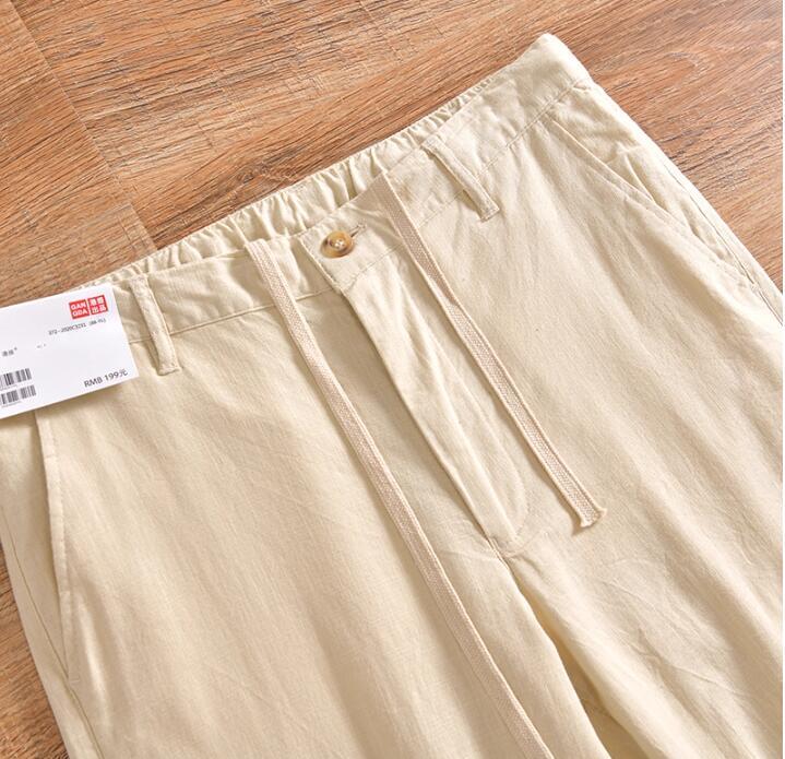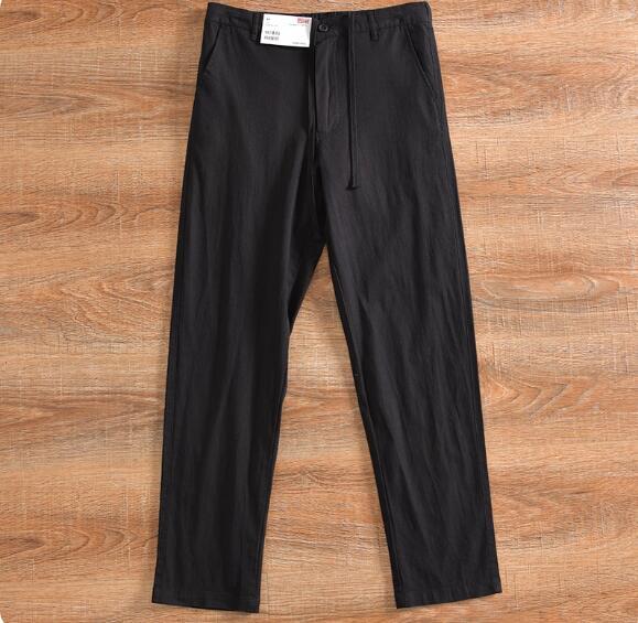 新作上質M ブラックリネン ストレートパンツ イージーパンツ 九分丈 綿麻混 通気 メンズ ビジネス サマー ウエストゴム カジュアル