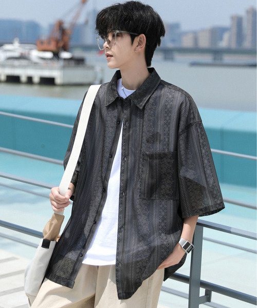 キーワード:シャツ メンズ レギュラーカラー ロング丈 花柄 半袖 夏 春
