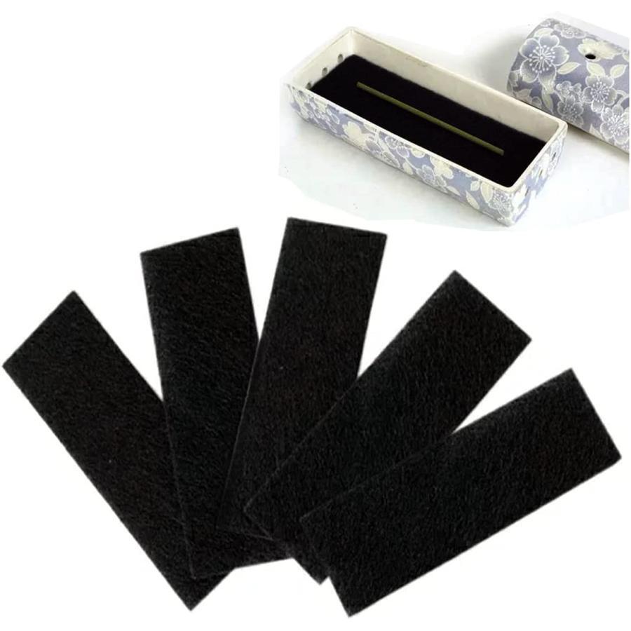 香炉 交換用 スパッタシート 10枚セット ・香皿の中に敷く、交換用フェルトです。 汚れが目立ちはじめたら交換してください。  (香皿は付属しません) ・寸法:約10.0cm×3.5cm  横置き筒型香炉「ゆい花」にピッタリのサイズですが、自由な大きさ、  形に切って使えますので、様々なシーンに活用できます。 ・カーボンフェルト5枚1組×2