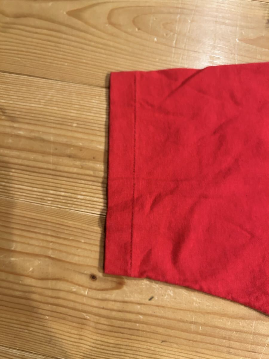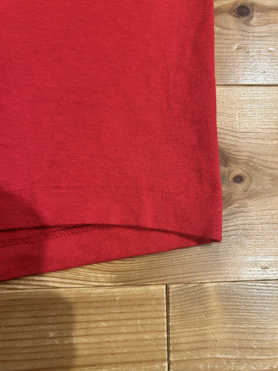 ネック付近に2箇所ピンホールを摘んだハンドリペアがありますが、どちらもとても小さいためほとんど目立ちませんし、古着慣れしている方であれば全く気にならない程度だと思います。その他、全体的に日焼け跡や生地のヨレ、着用に支障のあるような目立った汚れやシミ、ダメージやステッチ飛び等なく状態は良好です。