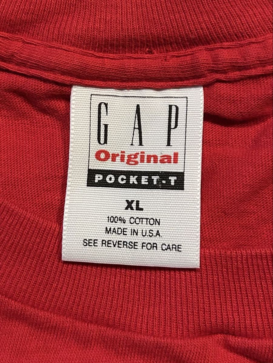 こちらは、90年代GAPのヴィンテージ半袖ポケットTシャツになります。両袖、裾のリブはどちらもシングルステッチでオールド仕様です。フロント左胸にポケットが付きます。OLD GAPのTシャツは肩幅と身幅が広く、着丈が短いBOX丈の作りなのでとても着やすいですし、オンスも厚すぎず薄すぎないコットン100%でとても着用しやすい1品です。個人的には数あるブランドの中でも、生地やサイズ感を総合的に考えるとOLD GAPのTシャツが1番着やすいと思います。100%コットンなので多少のサイズ調整も可能です。この辺りのヴィンテージのポケットTシャツは、カラーバリエーションで何枚持っていてもいいアイテムだと思います。ヴィンテージのポケットTシャツをお探しの方はこの機会に是非!!