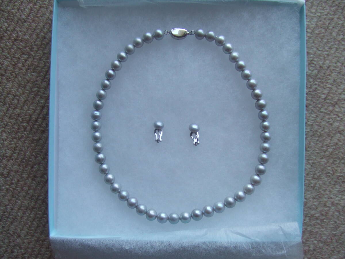 ★パールネックレス  グレー系 長さ42㎝ イヤリングセット 留め具925刻印有り