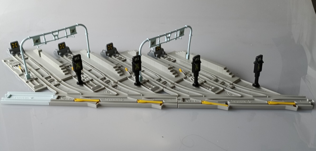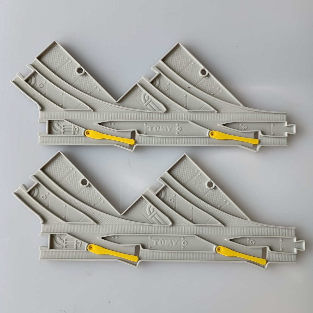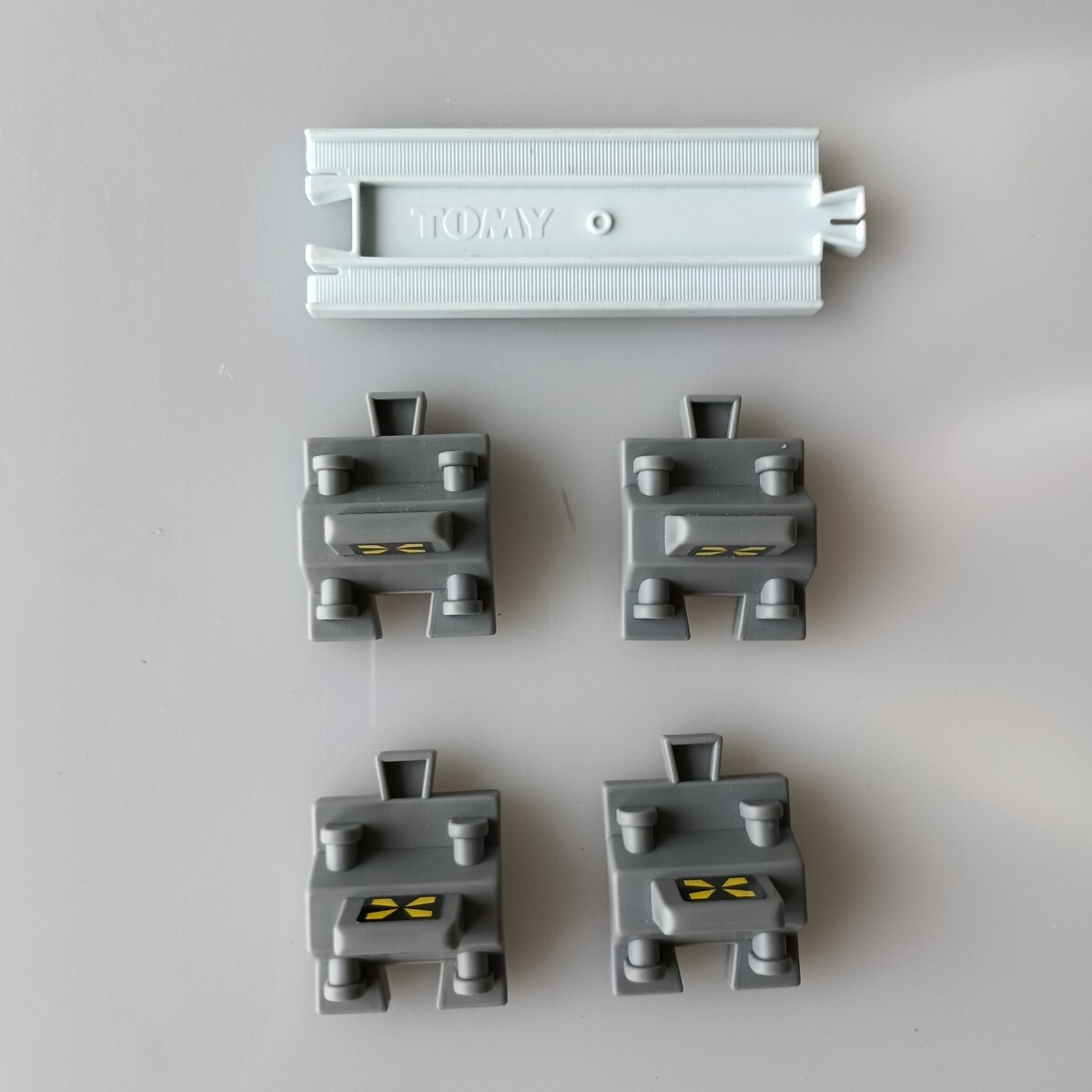 プラレール車両基地レールセットより車両基地レール2本、駅プラットホーム4つ、
