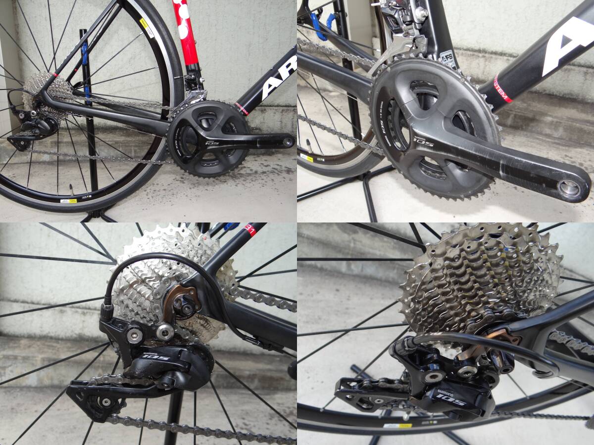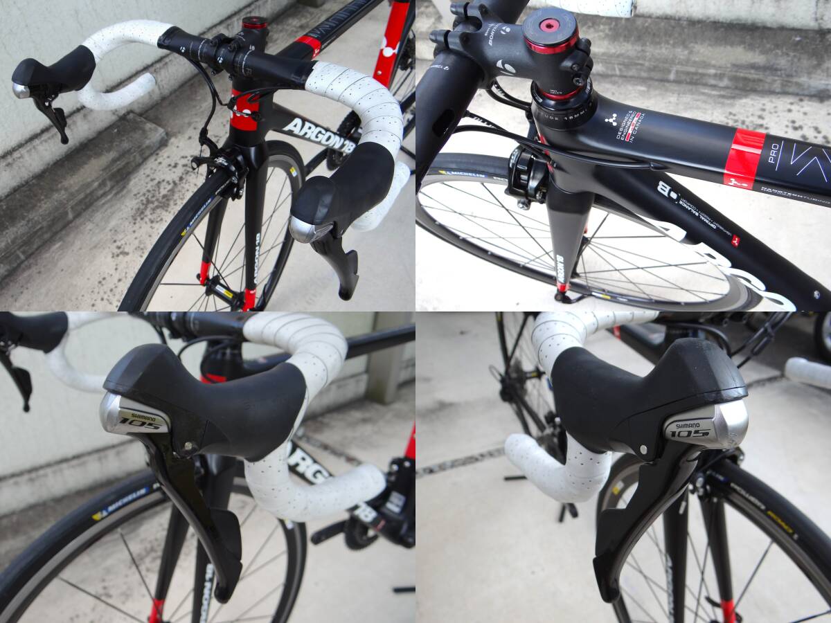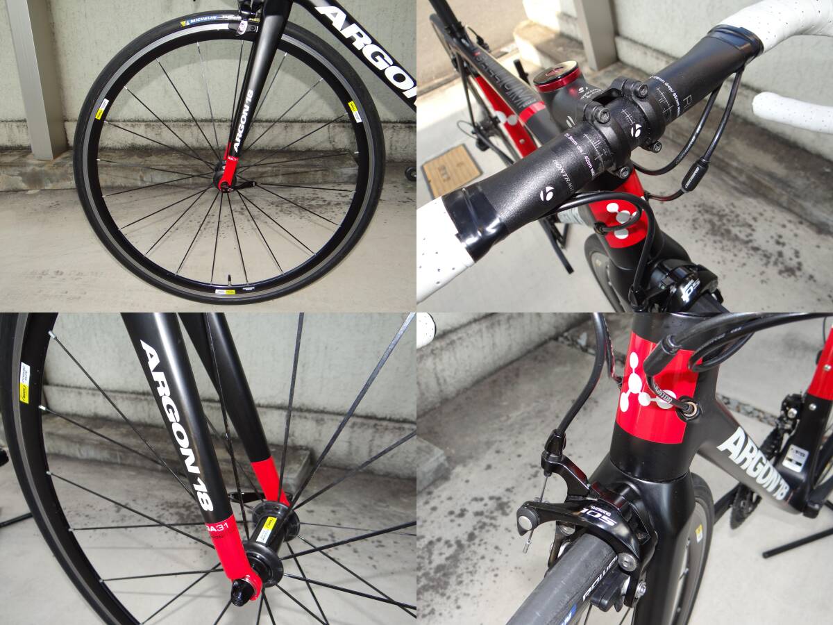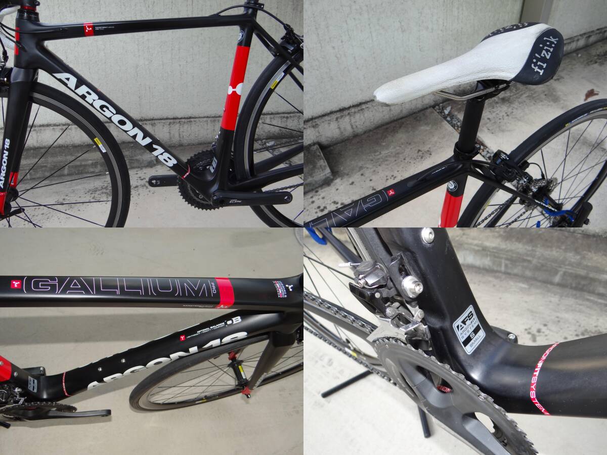 値下げはこれで最終とします。 しばらく入札が入らなければフレーム出品に切り替えます。 完車での入手をお考えの方はお早めに。 カナダのバイクメーカー、ARGON18の軽量オールラウンダー カーボンロードバイク、GALLIUM PRO 2017になります。 コンポはシマノ105(5800:11速)になります。 <仕様> 年式:2017年 色:Black Matte + Red Gloss フレーム:カーボン(Nanotech Tubing HM705) フォーク:カーボン(Ga31 Carbon Fork) メインコンポ:SHIMANO 105 5800/7000Mix(2x11s) シフター:SHIMANO ST-5800(2x11s) FD:SHIMANO 105 FD-5800 直付(2s) RD:SHIMANO 105 RD-R7000 GS(11S) スプロケット:SHIMANO 105 CS-700 11-34T(11s) クランク:SHIMANO FC-5800 34/50T 170mm ブレーキ:SHIMANO BR-5800 ホイール:MAVIC Cosmic Elite(700C) (ジオメトリー) サイズ:S ・シートチューブ長 (C-T):490mm(カタログ値) ・トップチューブ長 (C-C):540mm(ホリゾンタル換算) ・ヘッドチューブ長:109mm(カタログ値) (参考HP) https://storage.googleapis.com/argon18craft/files/Tech-Cards/galliumpro-techcard-inter-en-2.pdf https://funride.jp/equipment/roadbikeimpression2016_vol7_gallium/ |