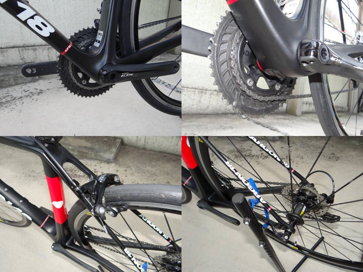 ARGON18、何よりデザインがカッコイイですよね。 低重心のジオメトリーも日本人向きと聞きますし、いつかは 乗ってみたいフレームのひとつでしたが、今回ご縁があって 2017のフラッグシップモデルと巡り合うことが出来ました。 2ヶ月ほど前に中古でフレームを入手し、手持ちのコンポと ホイールをインストールしました。入手後は室内での保管で 雨天走行はありません。 この夏は、これをメインバイクとして運用しましたので、 当方では約500km程度の走行になります。 コンポ類とホイールは中古で入手、ワイヤー類、スプロケ、 チェーンは新品です。ヒルクライムも考え、RDは7000系の 105(RD-R7000GS)としロー34Tのギアを入れています。 軽量フラッグシップの名に違わず、とにかく軽いですね。 体重計での簡易測定ですが、写真の状態で約7.3kg。 Dura-AceのC24をはかせた時は、7kgは切っていたと思います。 乗り味としては【生粋のピュアレーシングバイク】。 漕ぎ出しの軽さが、抜群に素晴らしいですね。 貧脚&坂道苦手の私でも、楽にヒルクライムをこなせるのは もちろんのこと、ミドルハイトのFULCRAM RACING QUATROを はかせても、平地の巡行の伸びが素晴らしい。 踏み込みからの軽やかな加速感が楽しくて、ついつい 前半から踏み過ぎ、後半に足を無くすというパターンに 毎回ハマっておりました(笑) なおフレームについては、BB付近のチェーンステー部に、 カーボンに達するキズの補修跡があります(写真9枚目) またシートステーの左下部にもタッチ補修跡がありますが 当方の走行中、パワーをかけて踏み込んでもライドに支障が 出るような不具合を感じる場面は無く、入手以降も補修が 広がるような気配もありません(あくまで私見です) クランクやSTIレバーなどのコンポ類は中古入手のため、 相応のキズやスレ、摩耗がありますが、変速の動きは特に 問題はありません(こちらも私見)。その他、写真を ご覧いただき、不明な点があればご質問ください。 当方のライド時には、特に不具合は感じておりませんが、 専門店の点検を受けているわけではありません。 車体の状態についても、感じ方に個人差があると思います。 他に当方の気づかない不具合があるかもしれません。 補修歴もありますので「一部訳あり」としての出品といたします。 なので落札後に状態についての不具合が見つかり、クレームや 補償、返品等を求められても、一切応じることはいたしません。 その点、十分ご理解された方のみ、入札をお願いします。 完璧なものを求める方、神経質な方は、入札をお控えください。 落札後のキャンセルやクレーム、返品は、ご遠慮願います。 素人整備の範疇なので、乗られる前には専門店での点検をおすすめします。 (その際に見つかった不具合についても、当方は一切対応いたしません) 最近、取引上のトラブルが多く、困っております。 日本語の通じない方、評価の悪い方(10以上)は入札をお控え下さい。 (当方の判断で、入札されても削除する場合があります) 新規の方でも受け付けますが、購入の意思を質問欄より明示下さい。 当方では防犯登録は行っておりませんでしたが、ご希望があれば、 譲渡証明書を作成いたします。 細身のスマートなスタイルにARGON18の文字、落ち着いた雰囲気から 繰り出される凄まじい加速力のギャップに心躍る、この夏でした。 ぜひご検討のほど、よろしくお願いします。 |