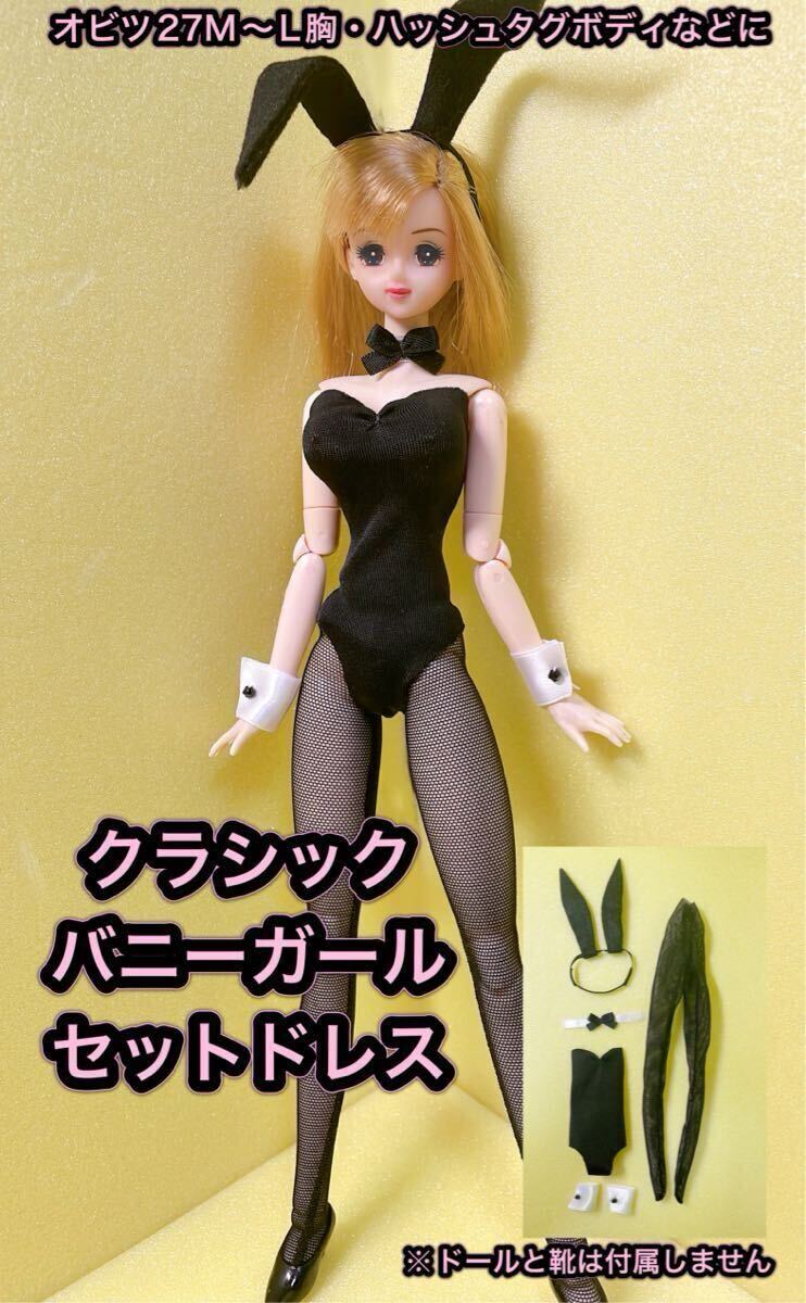 ジェニー、オビツ27女性ボディ(バストサイズ不問)、ハッシュタグボディなどが着用出来る、バニーガール・バニースーツのセットです。