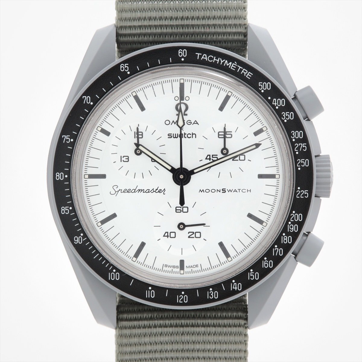 ■ 1円 ~ 正規 中古 美品 ■ オメガ × スウォッチ OMEGA × swatch ムーンスウォッチ 1965 ■ グレー メンズ SO33M106 クロノグラフ